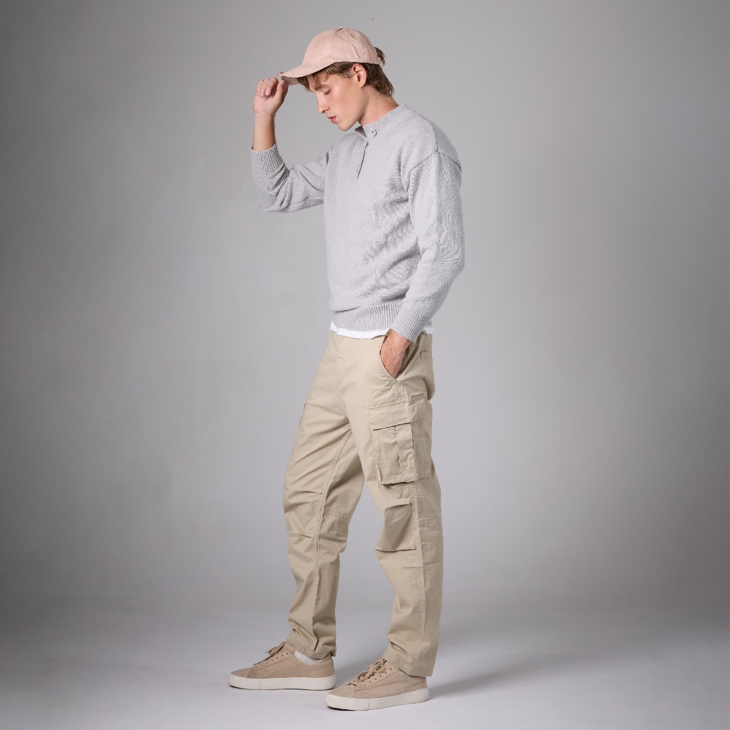 Jack Russel - Men Cargo Chino กางเกงชิโนทรงคาร์โก้ - Klassik J-222/CRM Straight Fit Cream Mid Waisted