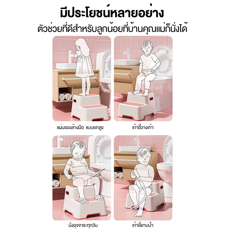 AKOM เก้าอี้สตูลเด็ก สตูลวางเท้าเด็ก เก้าอี้สตูลล้างหน้าเด็ก 2 ชั้น วัสดุพีพีคุณภาพสูง ปลอดภัยและป้องกันการลื่น