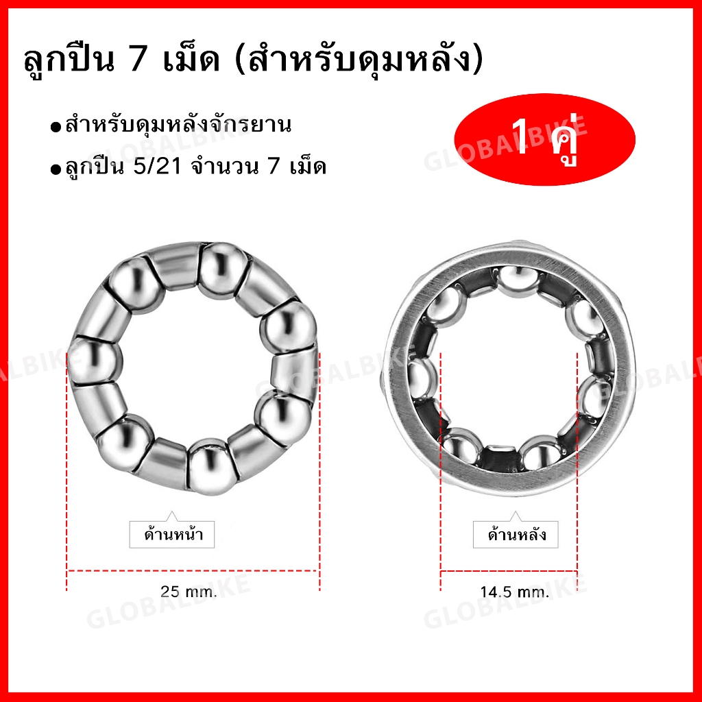 ลูกปืนพวงจักรยาน ลูกปืนดุมหน้า-ดุมหลัง สำหรับเพลากลาง ลูกปืนพวงคอ ลูกปืนกระโหลกจานเลื้อย *** ขายเป็นคู่ ***