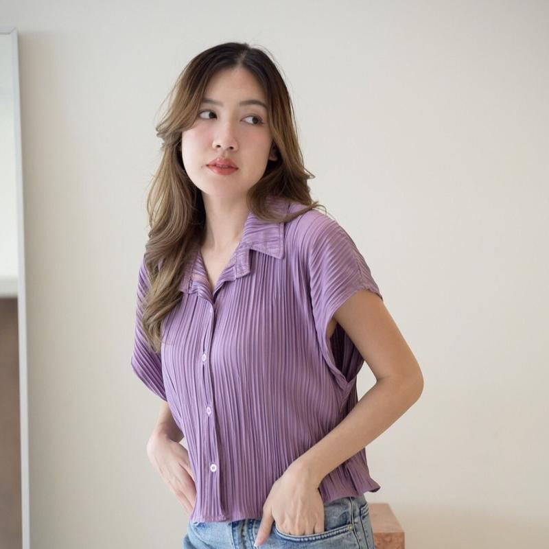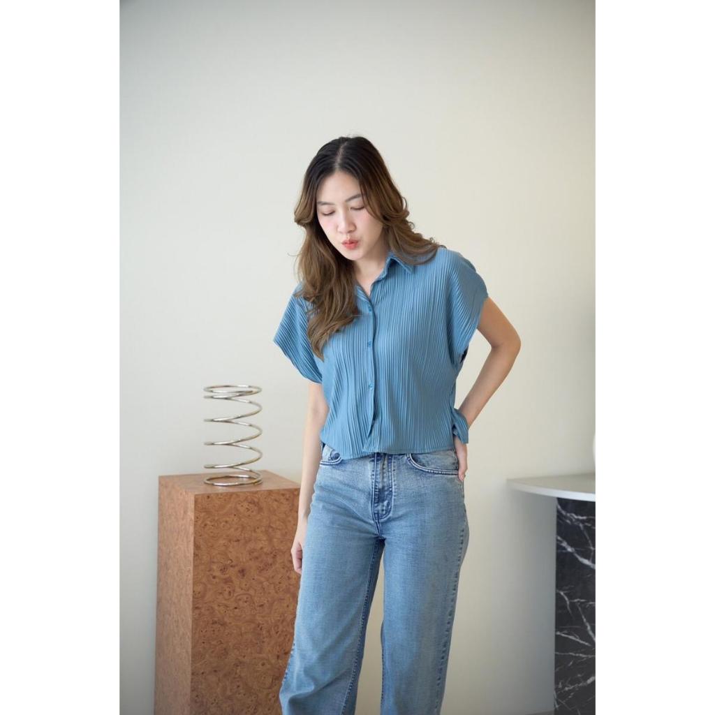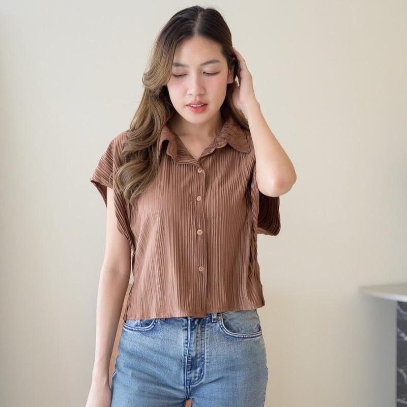 เสื้อครอบเชิร์ตแขนล้ำ ผ้าอัดพลีท งานน่ารักผ้าใส่สบายไม่ร้อน H123