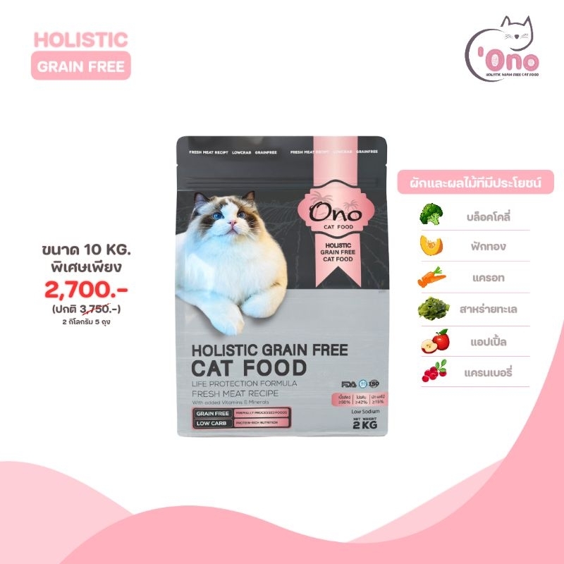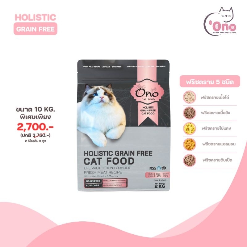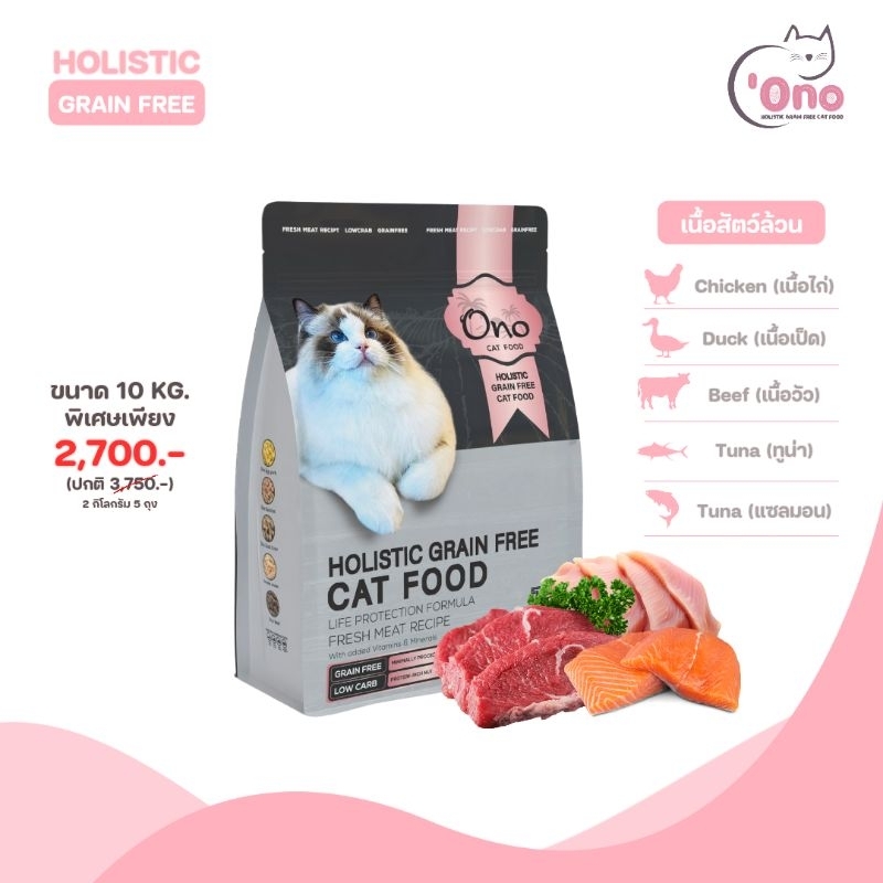 อาหารแมวโอโนะ Holistic Grain Free ขนาด 10 กิโลกรัม (อาหารขนาด 500 กรัม 20 ถุง)