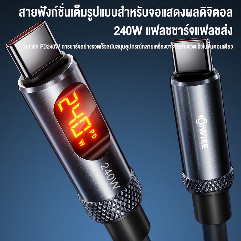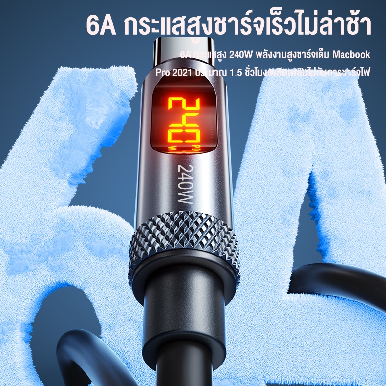 สายชาร์จ Type C เป็น Type C 240w หน้าจอดิจิทัล PD 3.1 ชาร์จเร็ว สําหรับแล็ปท็อป โทรศัพท์มือถือ สายชาร์จเร็ว E-Marker