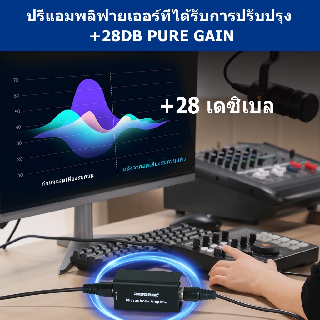 48v ไมโครโฟนแบบไดนามิก Preamplifier สําหรับ +28DB Gain Mic Amplifier สําหรับแบบไดนามิกและ Passive Ribbon ไมโครโฟน