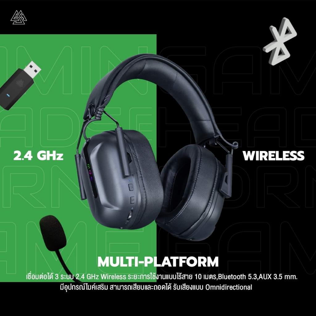 EGA TYPE-GH4 PRO หูฟังเกมมิ่ง Gaming Headset เชื่อมต่อ BT/Wireless/สาย ไมค์ถอดได้ ใช้งานต่อเนื่อง30ชั่วโมง ประกัน 2 ปี