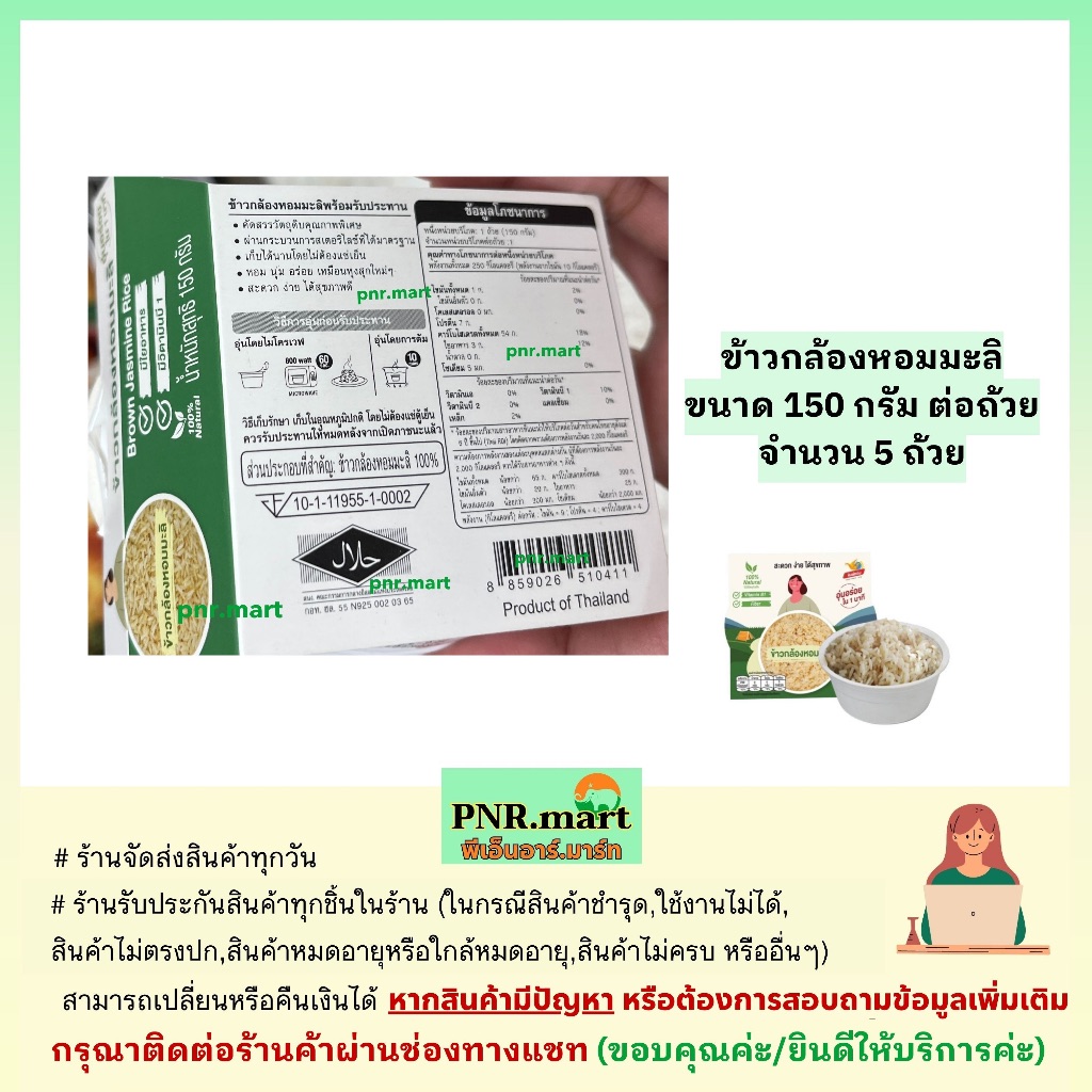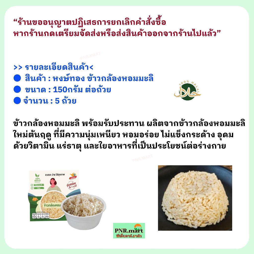 PNR.mart(5x150g) หงษ์ทอง ข้าวกล้องหอมมะลิ Hongthong Life brown jasmine rice / แค่อุ่นไมโครเวฟ พกพาสะดวก พร้อมทาน ของกิน