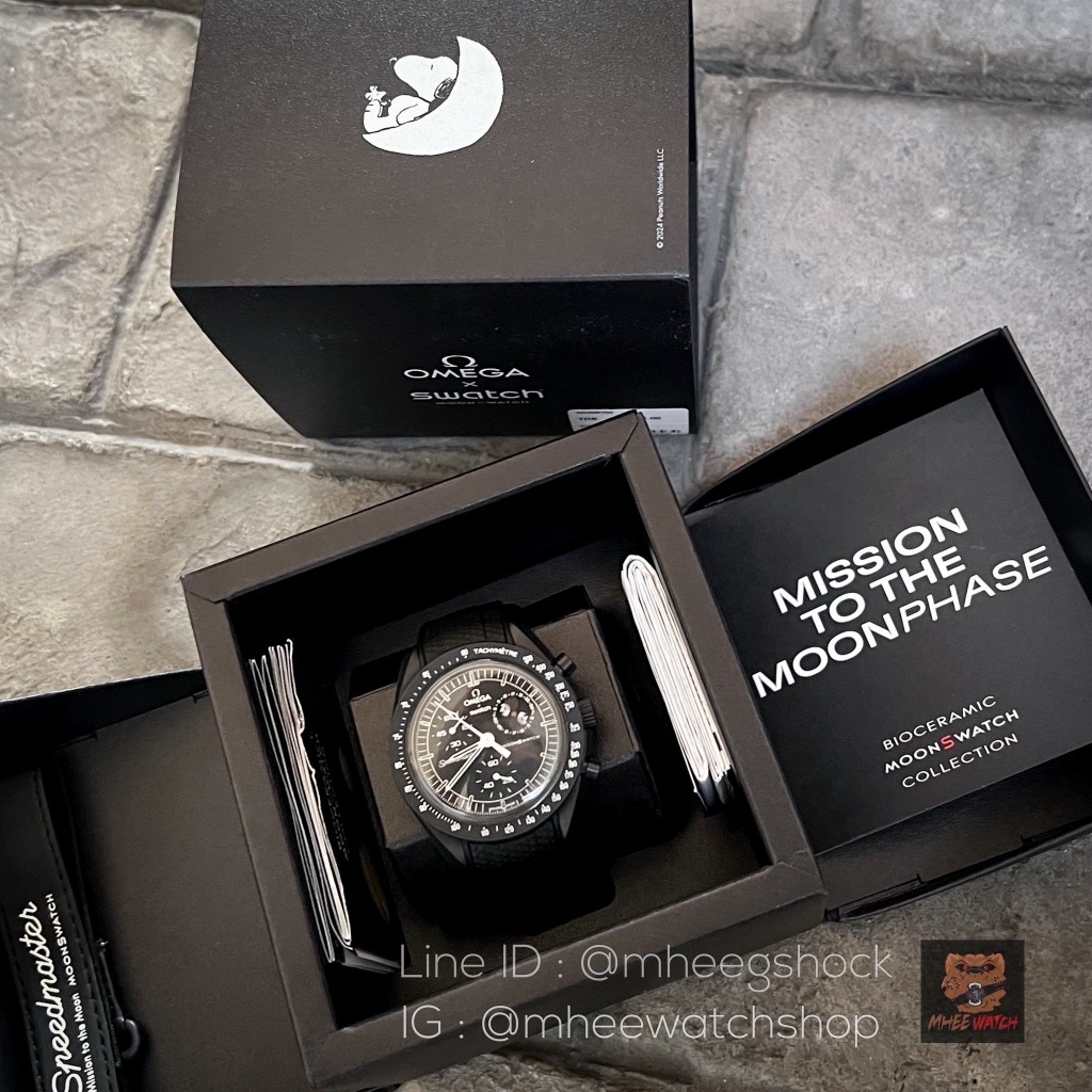สวอช&โอเมกา Limited Snoopy Black And White Color Free Premium Rubber Strap