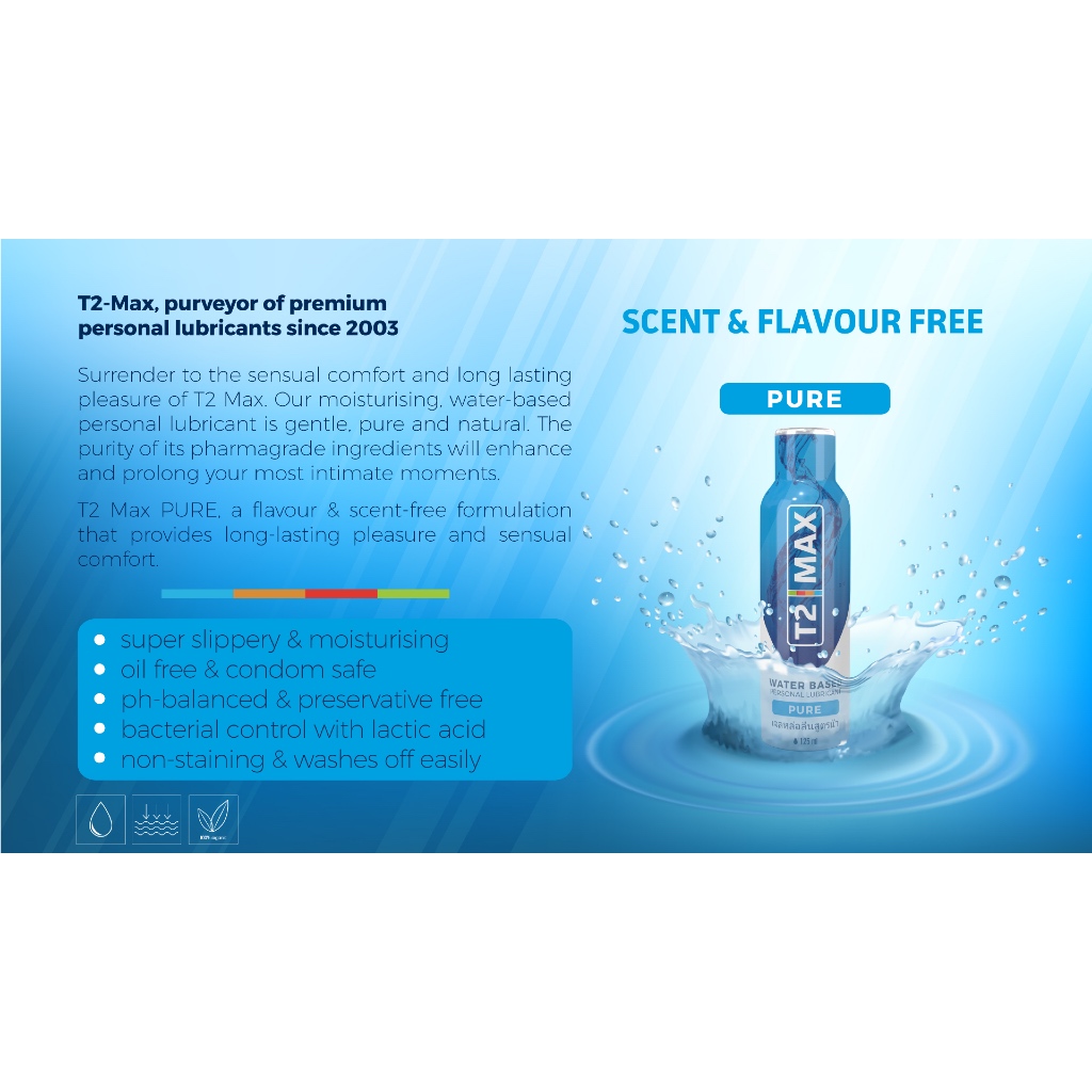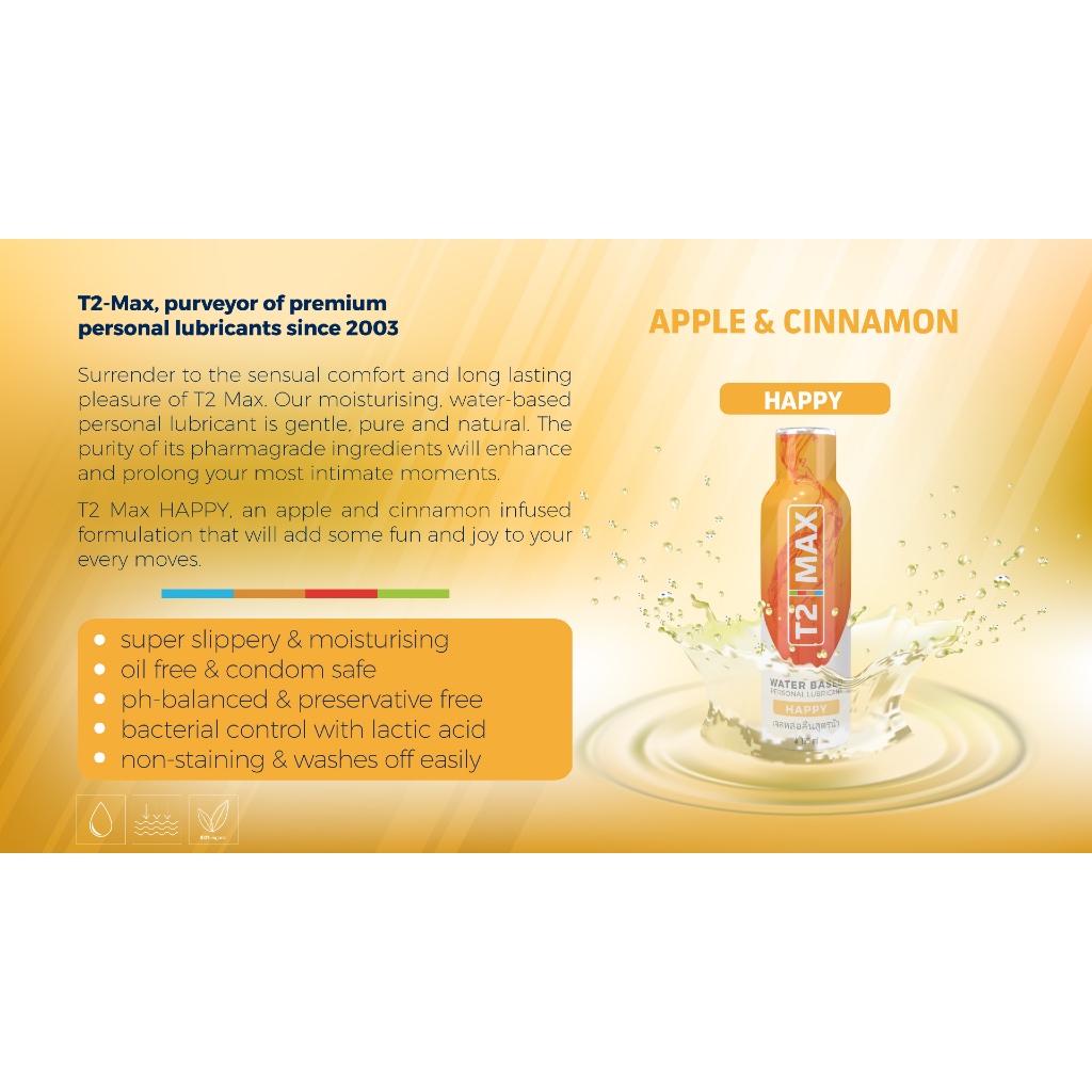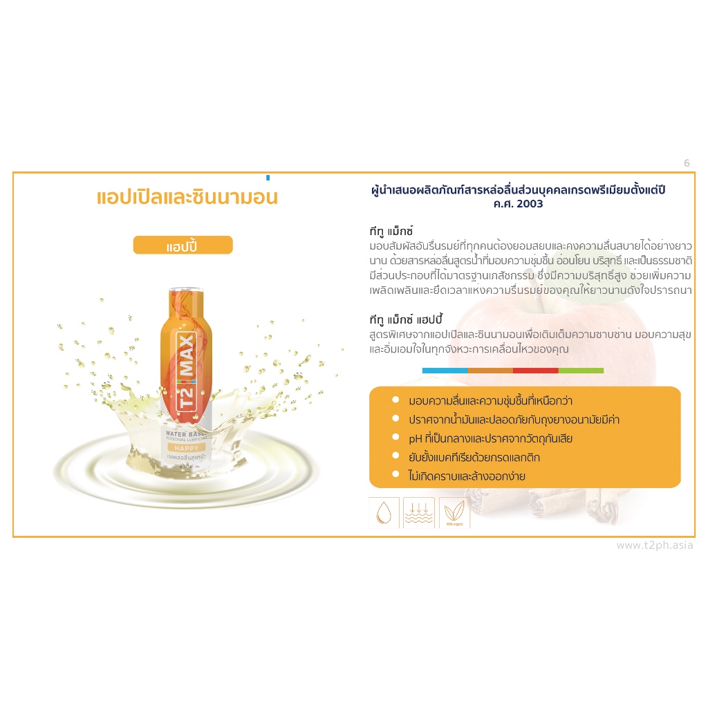 [เซ็ตคู่]T2 max เจลหล่อลื่น สูตรPureไร้สีไร้กลิ่น และ สูตรHappy กลิ่นแอปเปิ้ลและซินนามอน 2 x 125 ml.