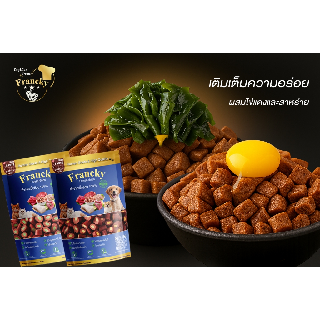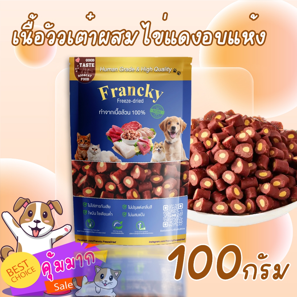 Francky เนื้อวัวผสมไข่แดงอบแห้ง Beef & Egg Yolk Cubes (100g) เกรดพรีเมียม เพื่อสุขภาพและขนสวยเงา