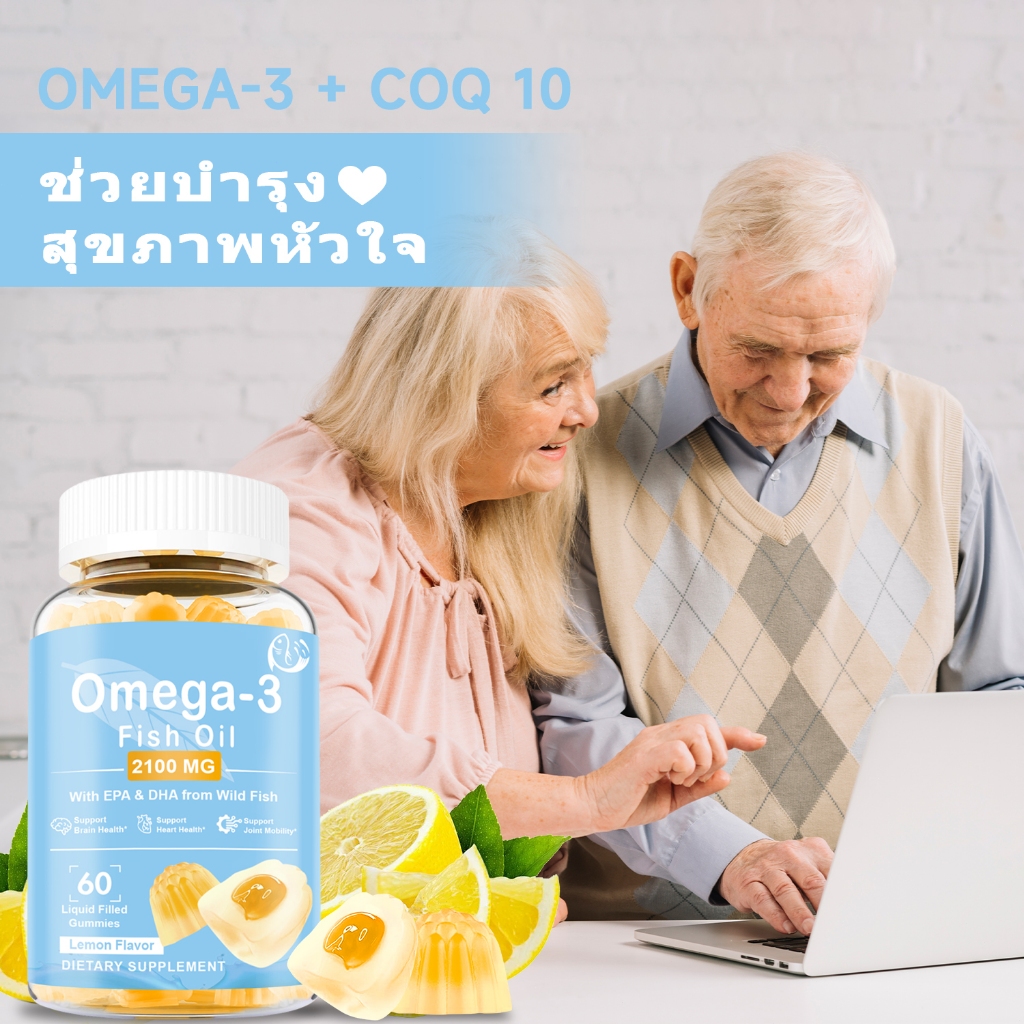 Softher OMEGA3 Fish Oil Gummy Help บํารุงสมอง Omega3 น้ํามันปลา อาหารเสริม 60 มะนาว น้ำตาล