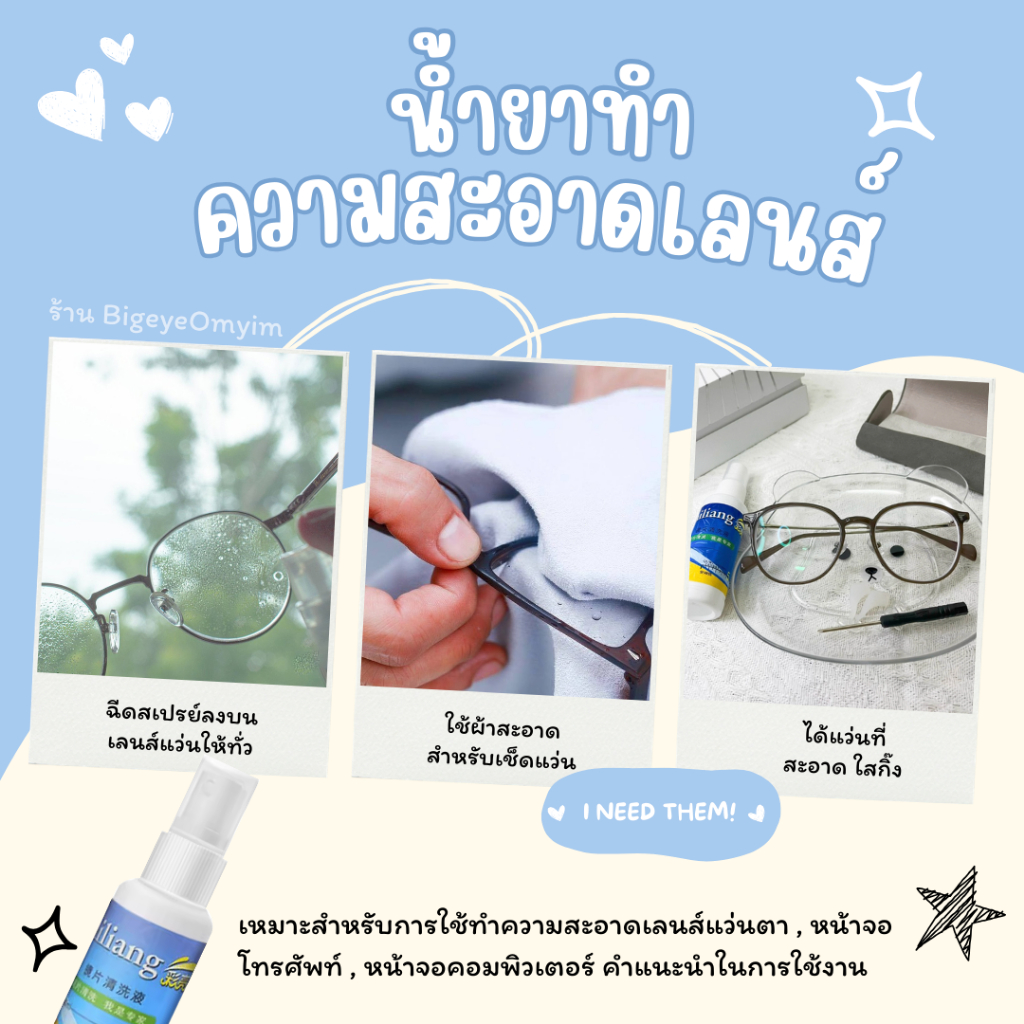 สเปรย์เช็ดแว่น น้ำยาทำความสะอาดแว่นตา Lens Cleaner ขนาด 50ml