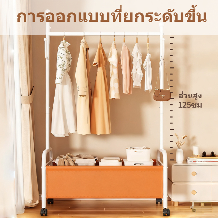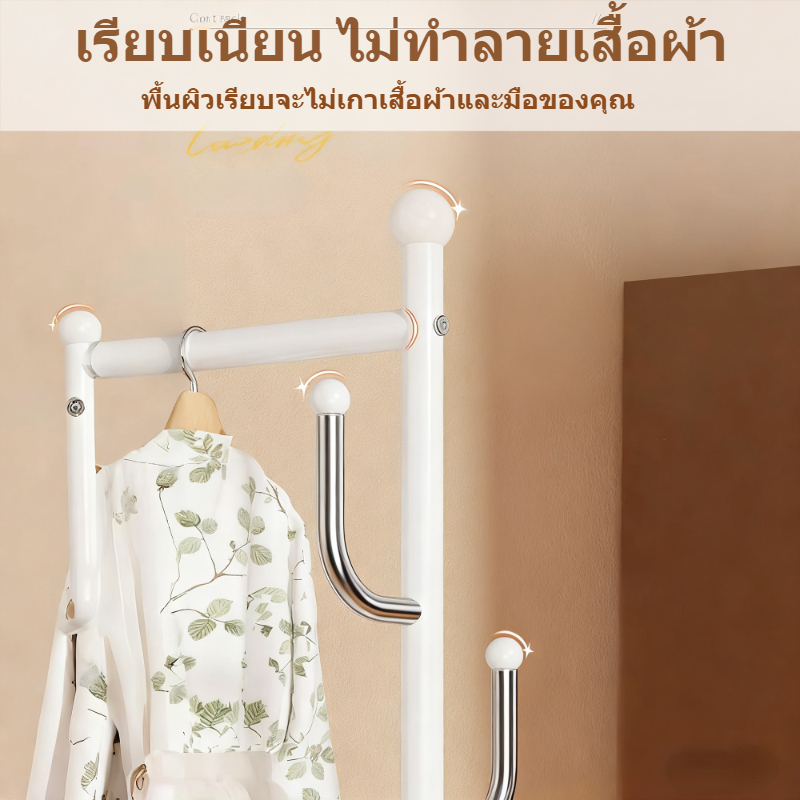 SEVENWOOD ราวตากผ้า ที่แขวนหมวก ราวแขวนผ้า อเนกประสงค์ มีชั้นวาง รับน้ำหนักได้มาก ดีไซน์เรียบง่าย ติดตั้งง่าย มีล้อ