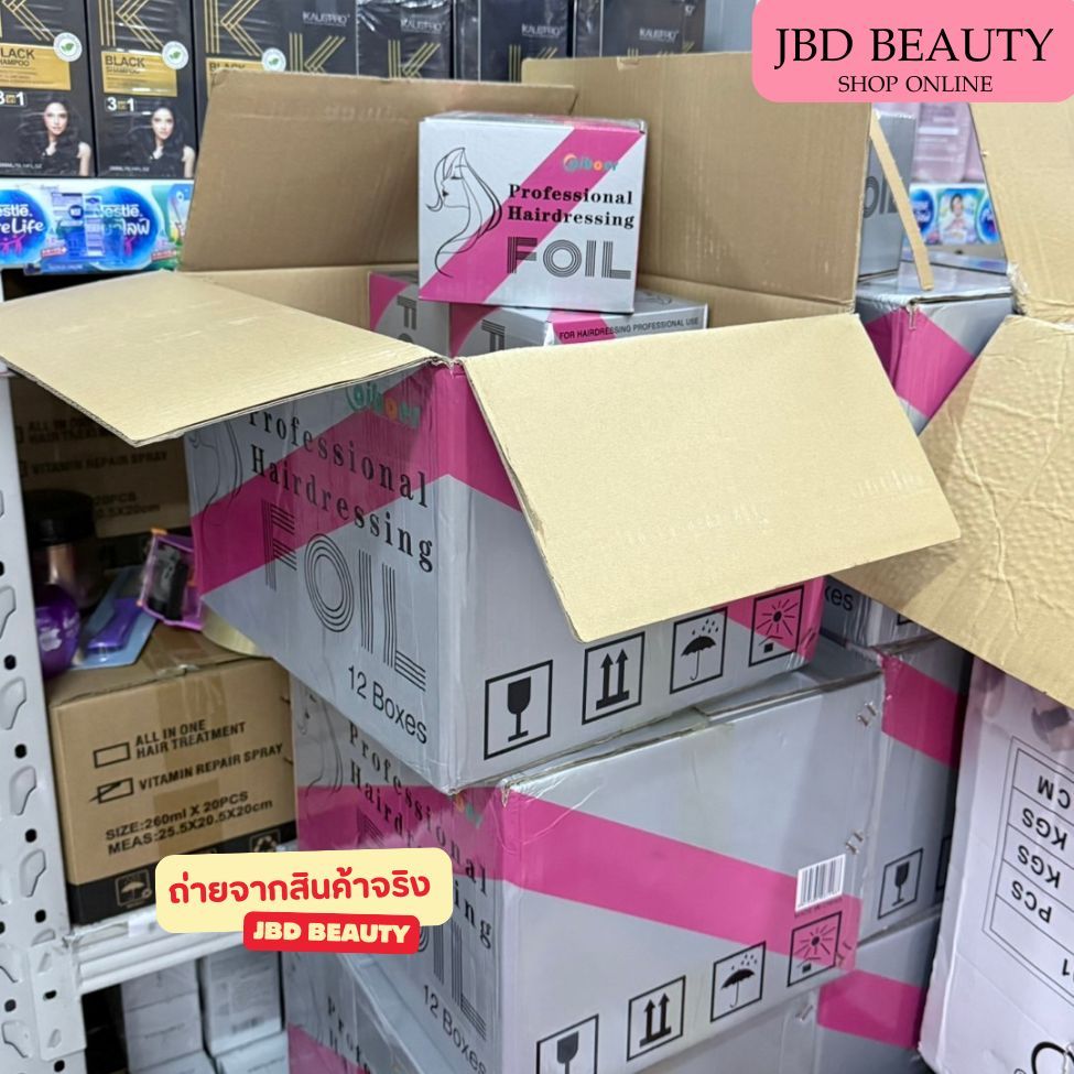 ฟอยล์ไฮไลต์ผม หน้ากว้าง 12cm กล่องสีเทาชมพู ใช้ย้อมสีผม ฟอกสีผม ตัดได้หลายขนาดตามใช้งาน มี 2 ขนาด