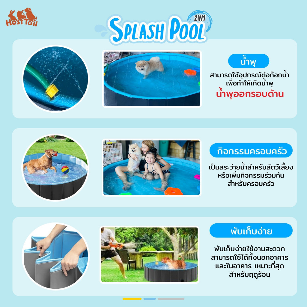 HostTail Splash pool 2 in1 สระว่ายน้ำสัตว์เลี้ยง+น้ำพุ สระว่ายน้ำสุนัข