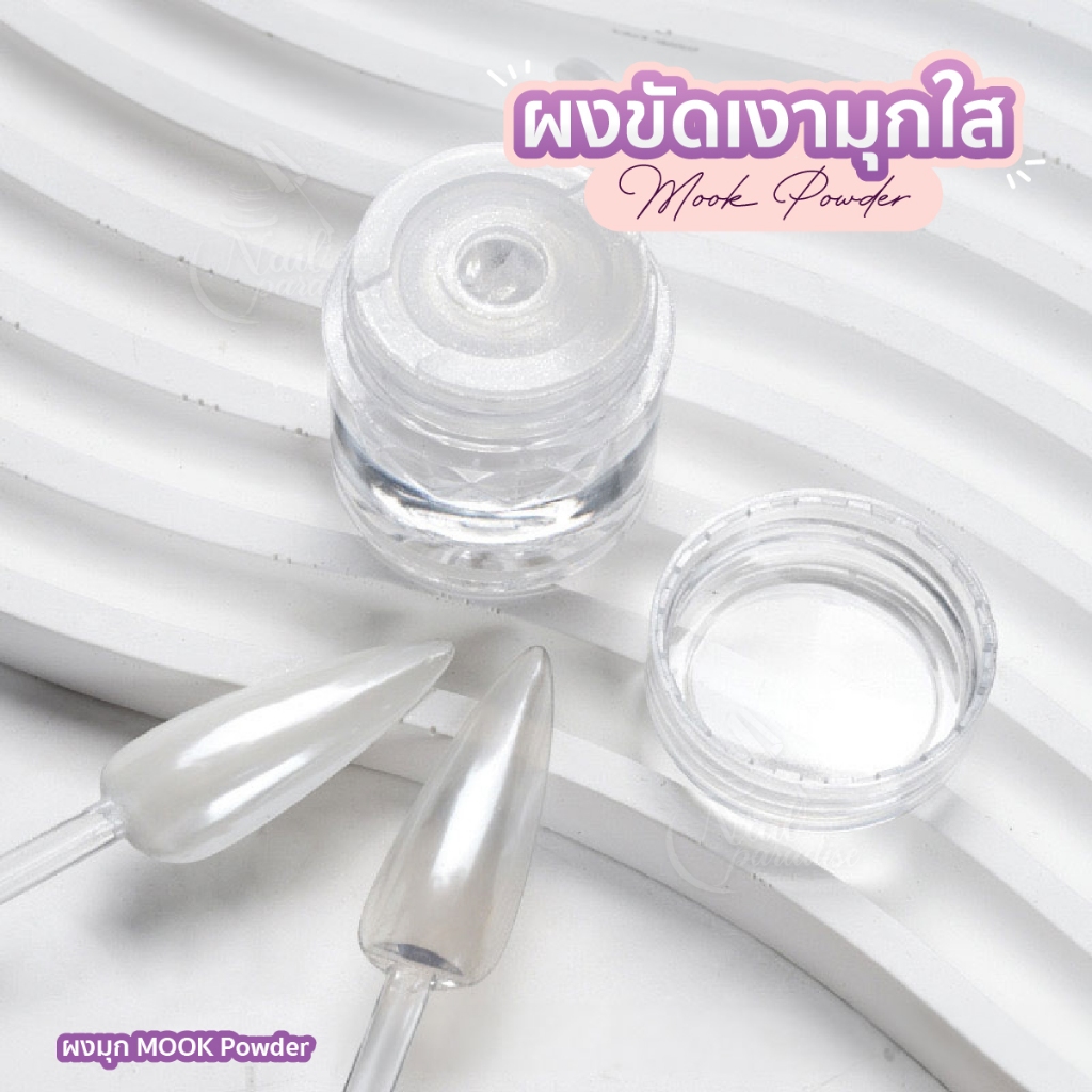 Majikku ผงกระจกมุกใส แถมแปรง เปลี่ยนสีธรรมดาให้ดูเป็นสีมุก ออโรร่าสีขาว Mook Powder