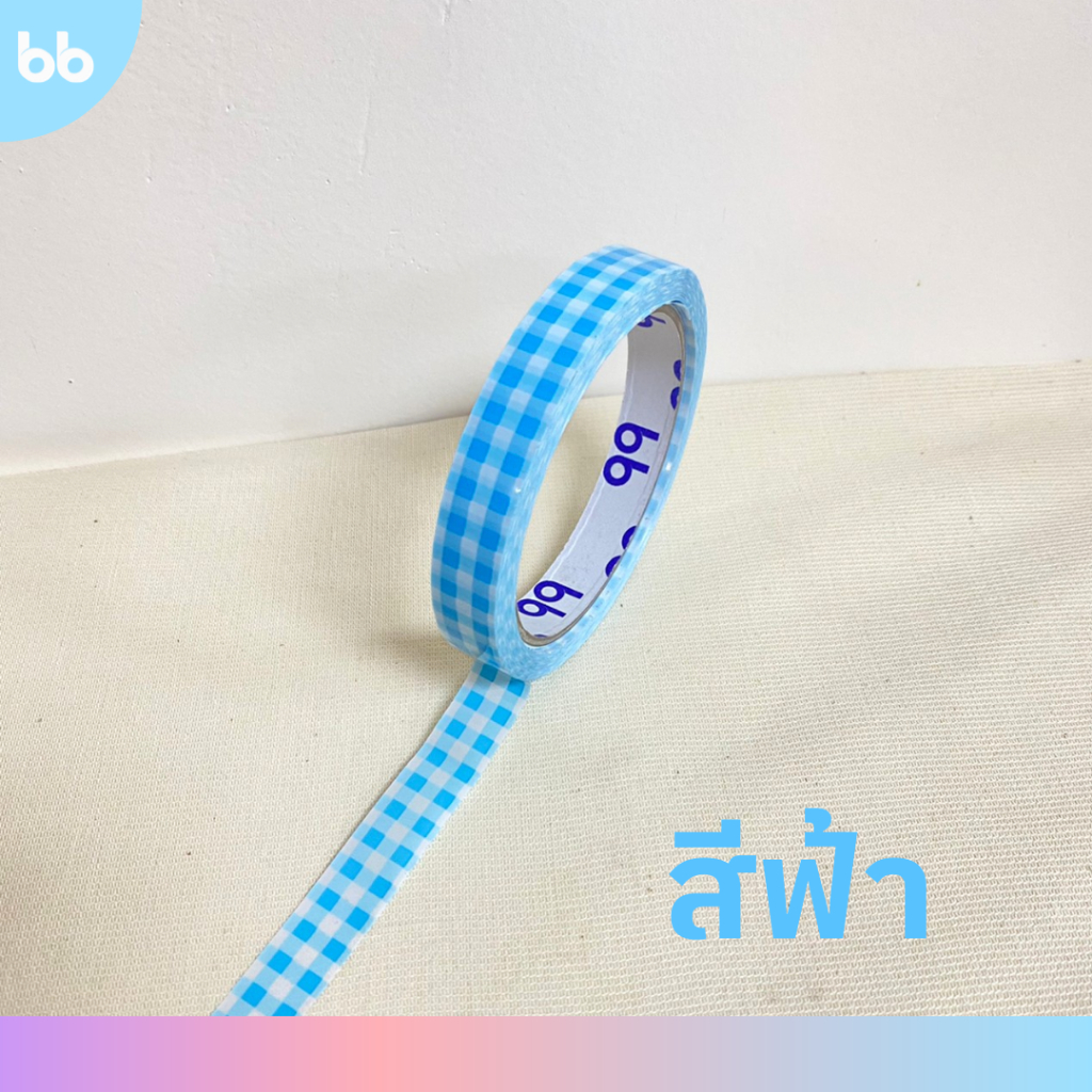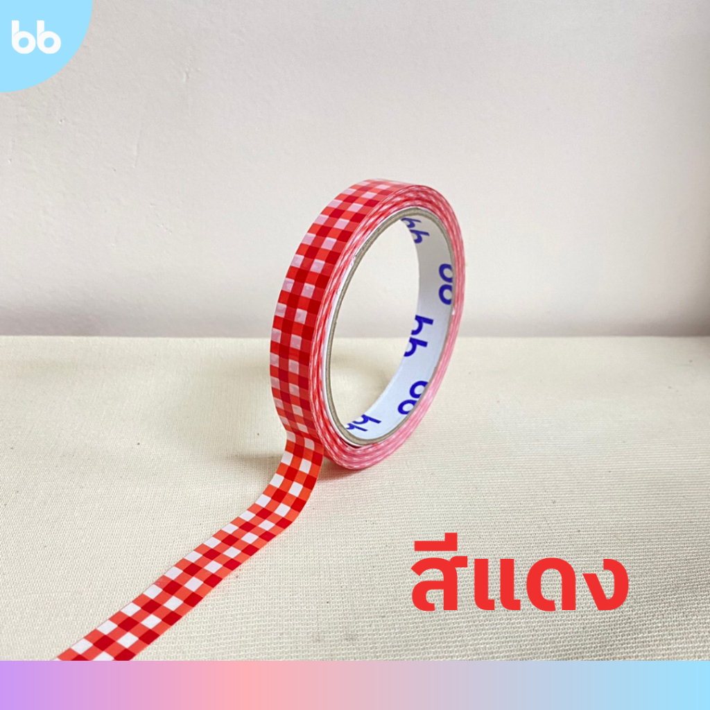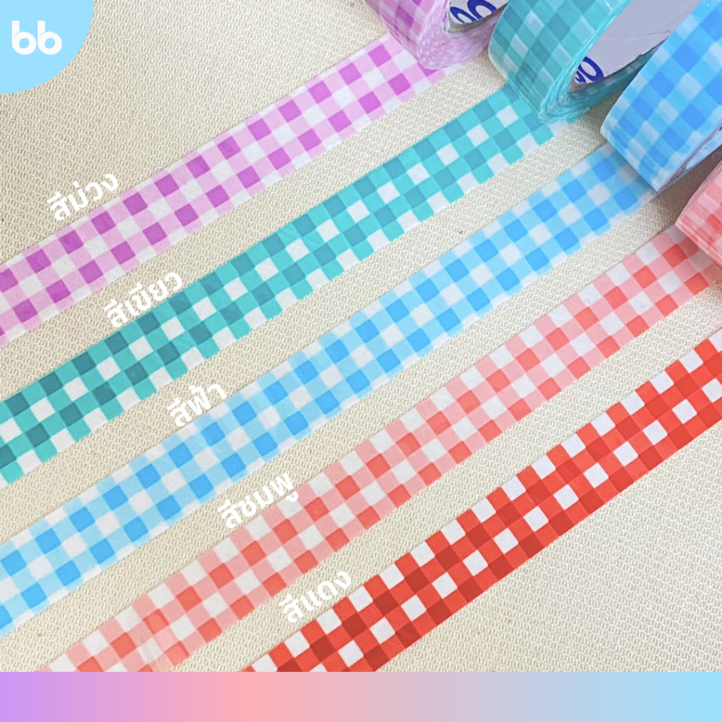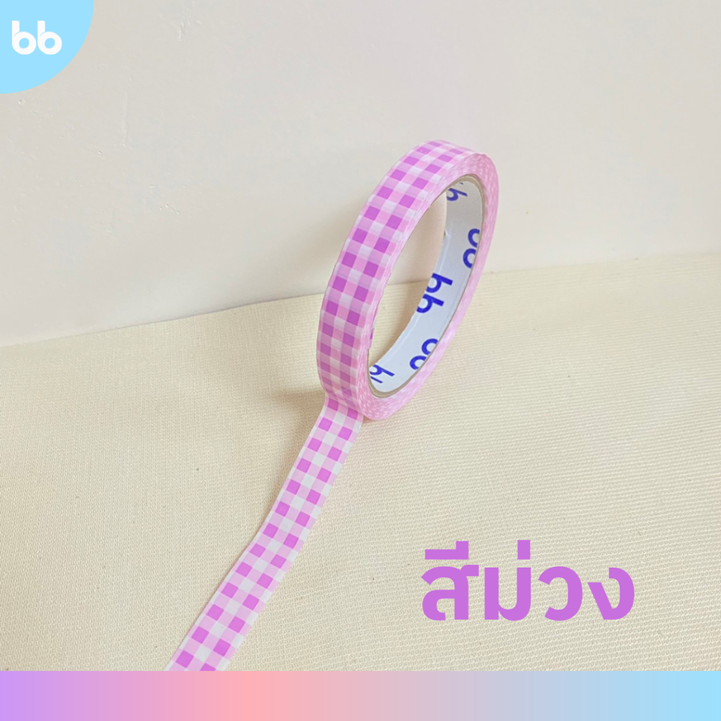 เทปตารางเล็ก 15 มม. 45 หลา (ม้วน) Plaid Tape❤️💜💗🩵💚 ติดกล่องขนม เบเกอร์รี่ เทป For u