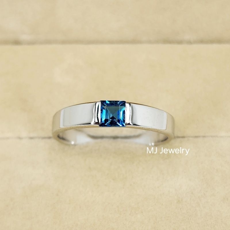 แหวนพลอยลอนดอนบลูโทปาส ทรงสี่เหลี่ยม ขนาด 4 มิล เงินแท้ 925 รับประกันพลอยแท้