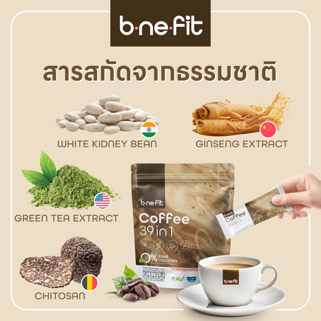 [5แพ็ก100ซอง] b.ne.fit Coffee บี.นี.ฟิต คอฟฟี่ กาแฟเพื่อสุขภาพ คุมหิว ลดอยาก ช่วยขับถ่าย