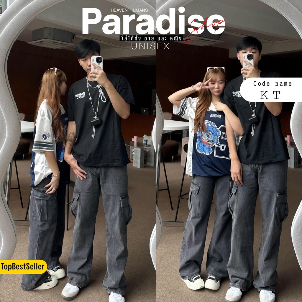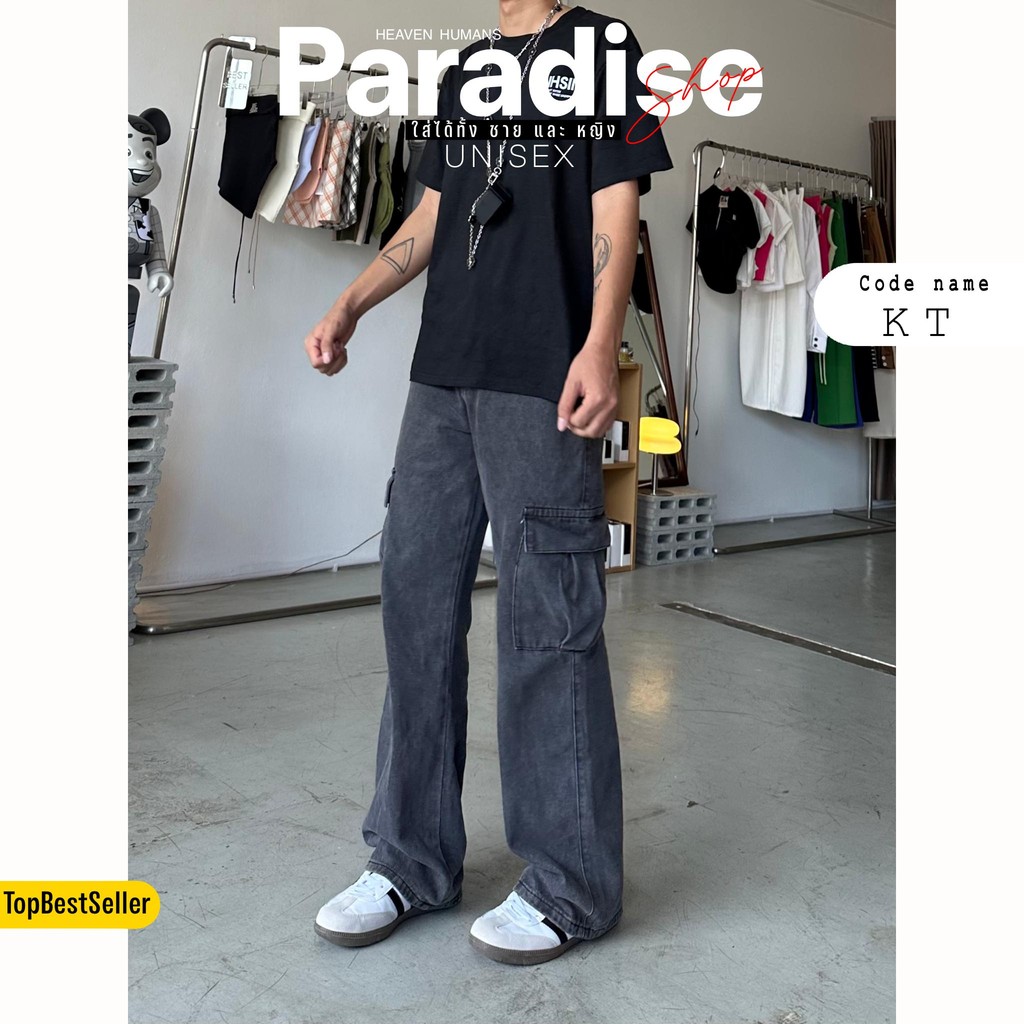 Cargo Smok'e gray | กางเกงคาโก้ - สีเทาฟอกสโมค | ใส่ได้ ชาย - หญิง | Unisex | Men - Women | Jeans รหัส KT