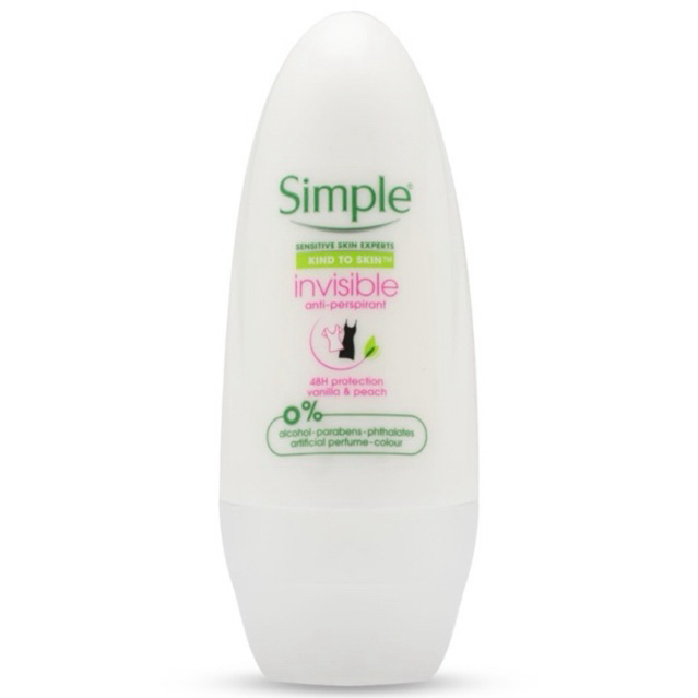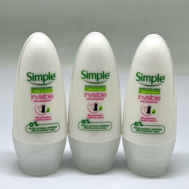 ถูก แท้ ส่งไว ภายใน24ชม. 💥 Simple โรลออน Simple Invisible Anti-Perspirant Vanilla & Peach 45ml. Clearance