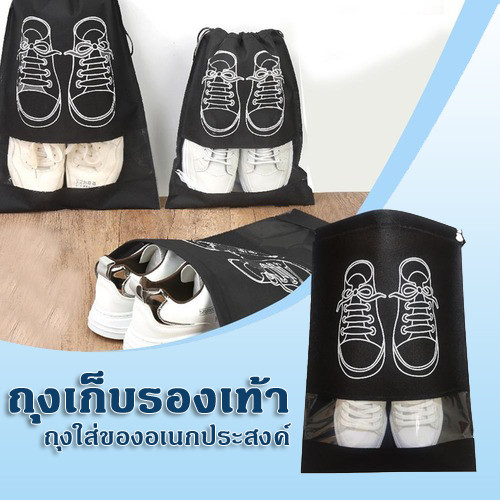 ถุงใส่รองเท้าแบบหูรูด ถุงเก็บรองเท้า ถุงป้องกันฝุ่น มีสายรูดปิดปากถุง ห้อยแขวนได้ ถุงใส่ของอเนกประสงค์