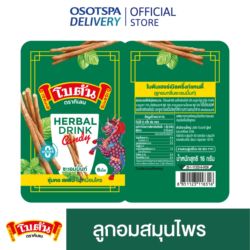 Botan โบตัน ลูกอมรสลิโคไรซ์มิ้น 8เม็ด 16 กรัม / Botan Licoricemint 16g - เลือกแพ็กด้านใน