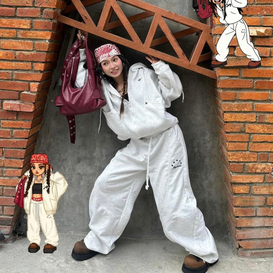 Karants เสื้อฮู้ดซิปโลโก้โลหะ คอสูง กระเป๋ากว้าง ทรง Cropped Boxy- AK25