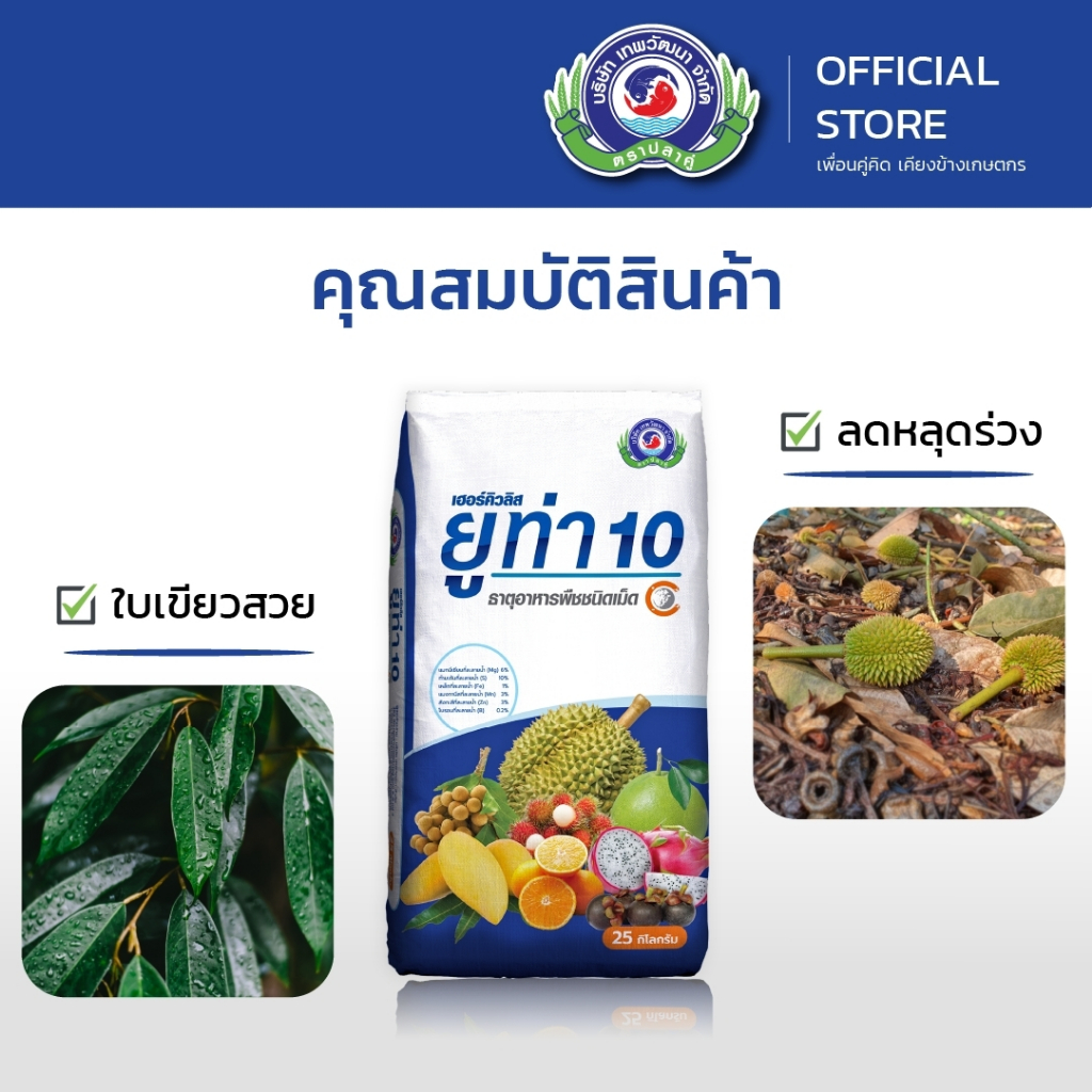 ยูท่า 10 ขนาด 25 กิโลกรัม | เทพวัฒนา ตราปลาคู่ | ธาตุอาหารเสริมพืช ฮอร์โมนพืช (ฟื้นต้น ลดหลุดร่วง ใบเขียว)