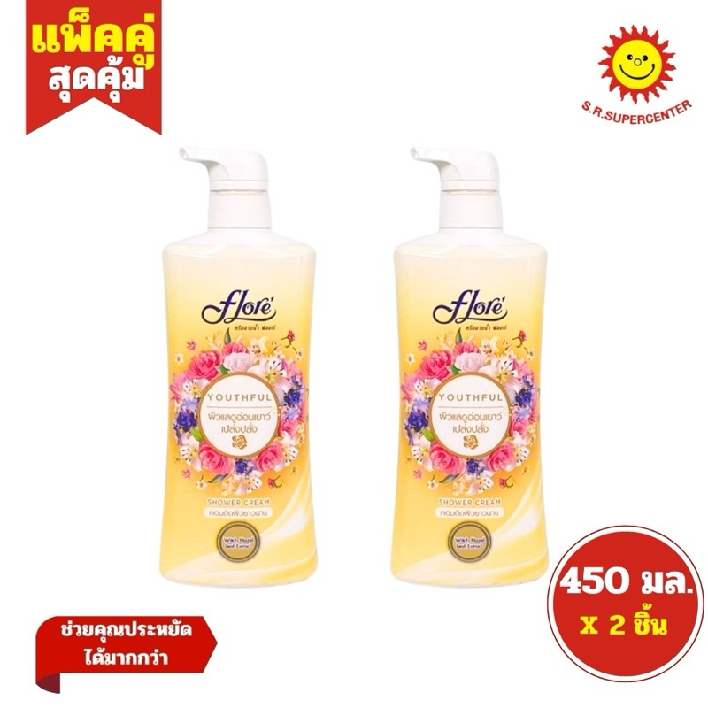[ แพ็ค2ขวด ] Flore ฟลอเร่ ครีมอาบน้ำ หอมละมุน ขนาด 450 มล. (แพ็ค2ขวด) คละสูตร