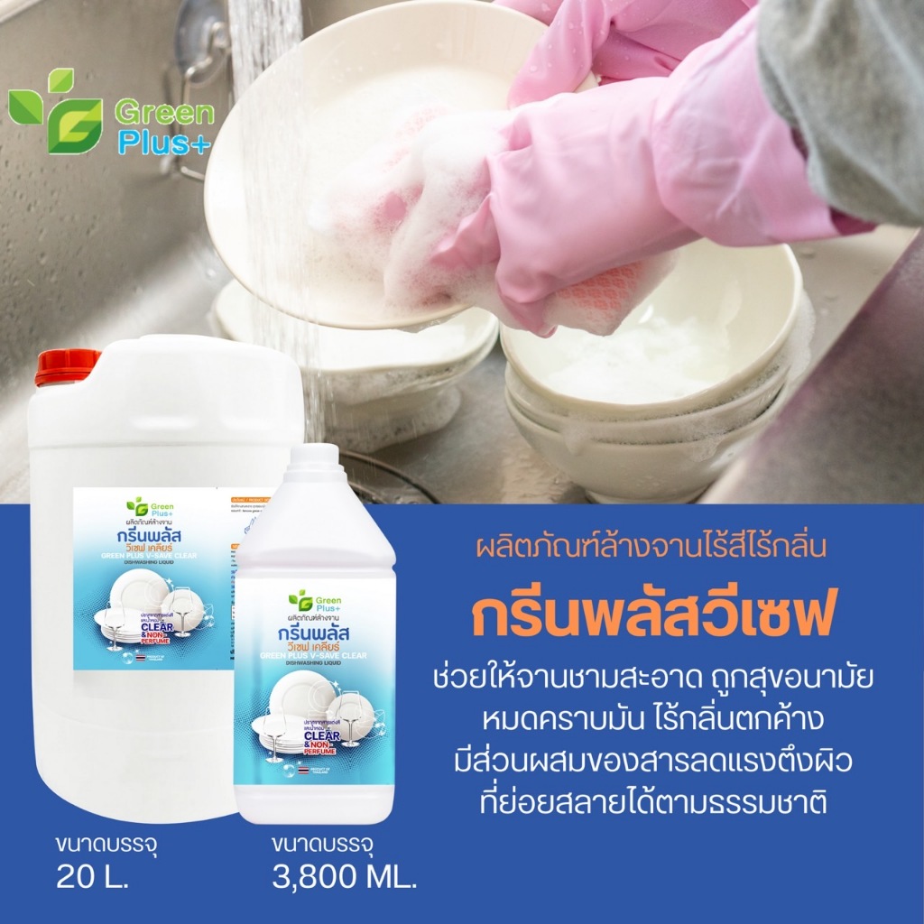 กรีนพลัส น้ำยาล้างจาน สูตรวีเซฟ ไร้สีไร้กลิ่น ขนาดถัง 20 ลิตร