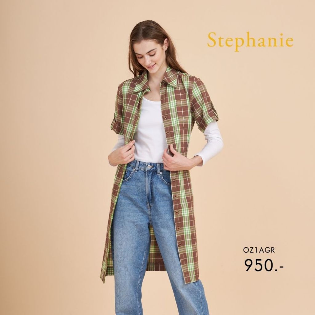 Stephanie DressA-Line ชุดเดรสเชิ๊ต DressA-Line ทรงเอสีเขียว OZ1AGR