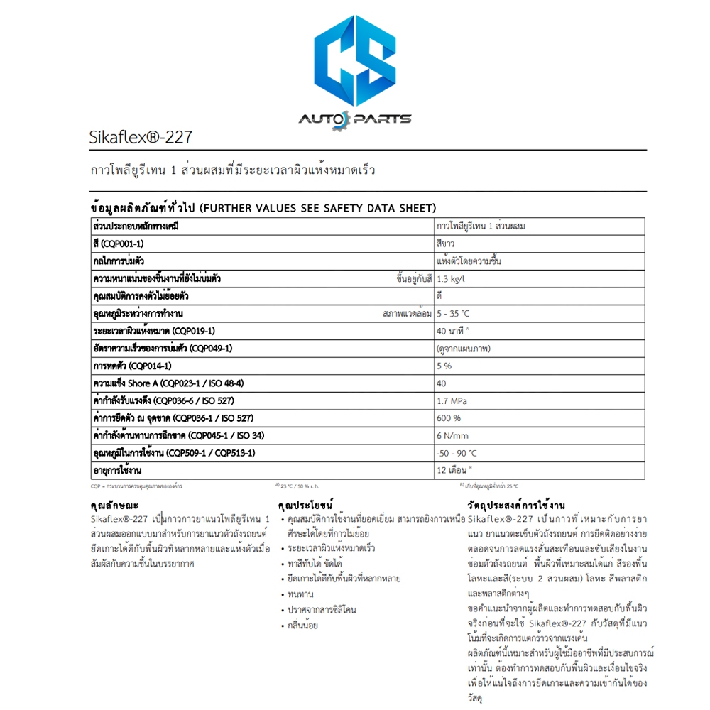 SIKAFLEX 227 กาวโพลียูรีเทน สำหรับงานยาแนวรอยตะเข็บตัวถังรถ ขนาด 310 ml. (สีขาว)