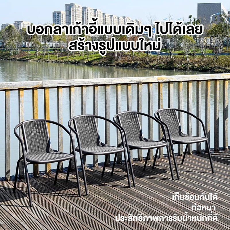 EF เก้าอี้หวาย เก้าอี้แคมป์ปิ้ง เก้าอี้กลางแจ้ง ชุดโต๊ะเก้าอี้รับแขกหวายเทียม แข็ง ทนทาน กันน้ำและกันแดด ความจุแบริ่ง