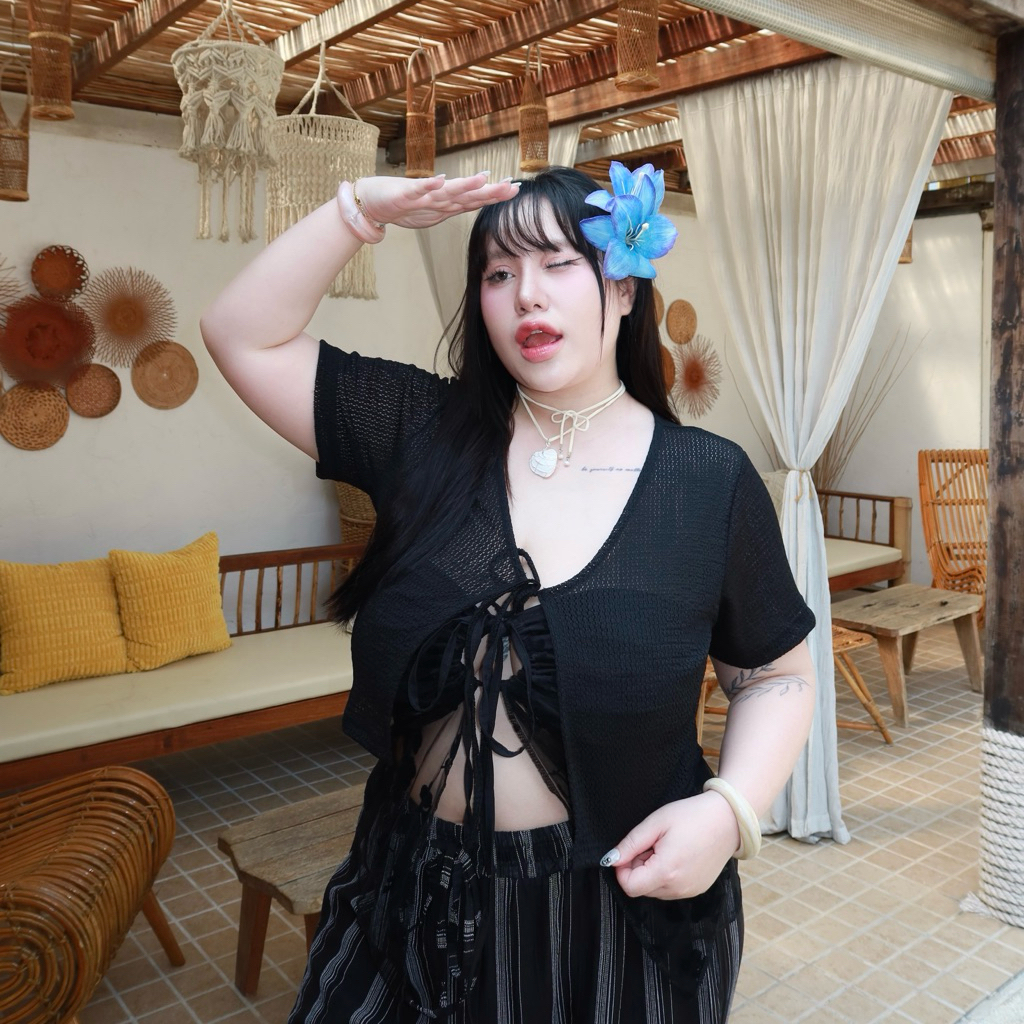 Boki Shirt (เสื้อโบกี้) เสื้อคลุมผูกโบว์แขนสั้น ผ้าไหมพรมซีทรู🌼🧁🎀 | Geebeety