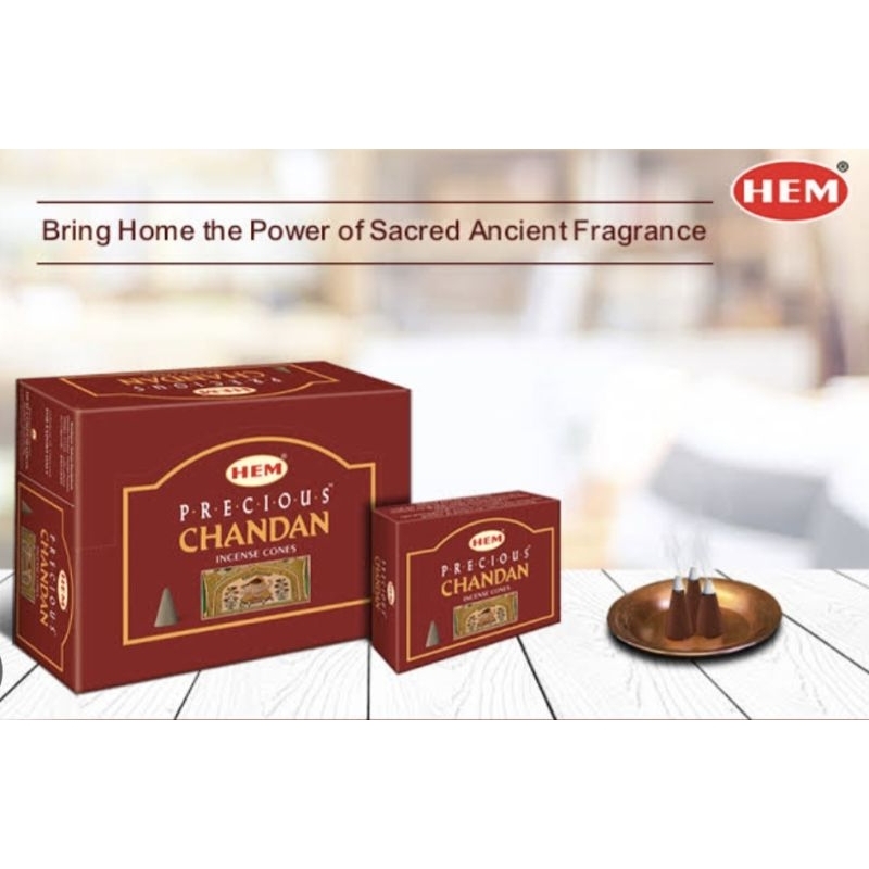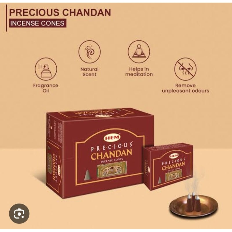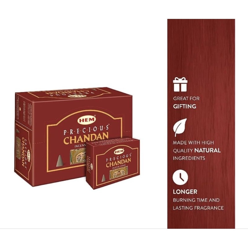 กำยานหอมเฮ็ม กลิ่นไม้จันทน์_ Hem Chandan Cones_ ของอินเดียแท้ สำหรับบูชาเทพ สมาธิ กลิ่นหอมติดทนนาน(1กล่องใหญ มี 12แพ็ค)