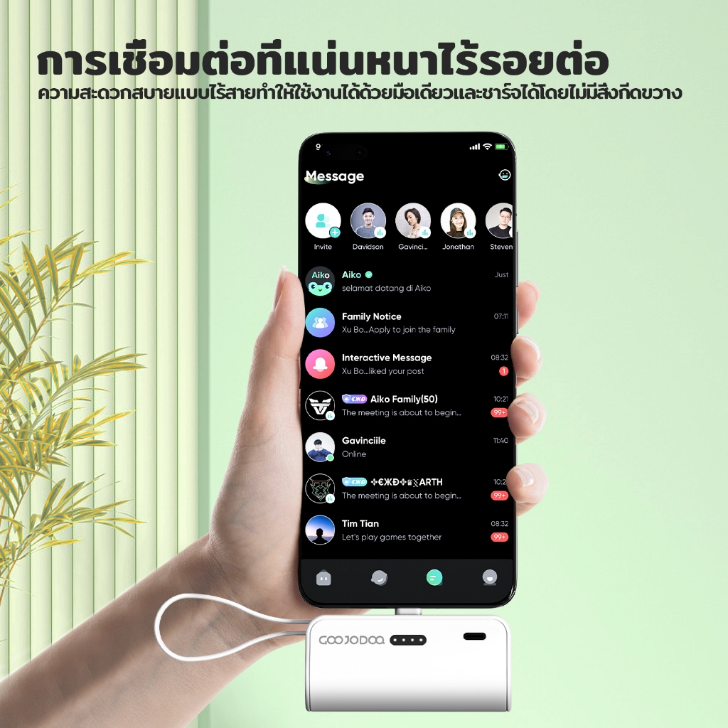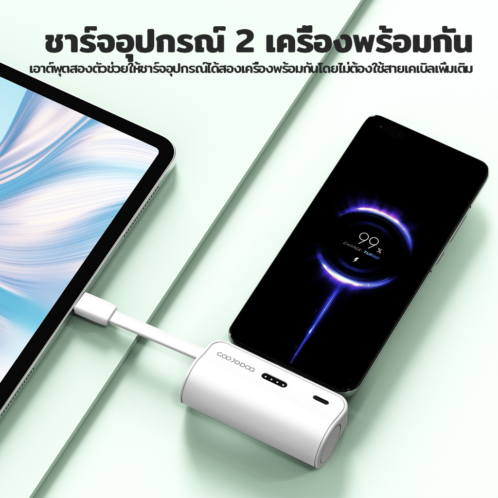 GOOJODOQ 5000mAh Mini Power Bank การชั่งน้ําหนักประมาณ 100 กรัมสายเคเบิล LN ในตัวและปลั๊ก Type-C ไร้สายเคเบิล