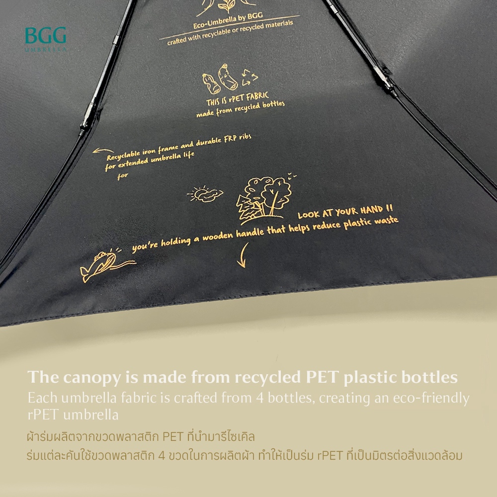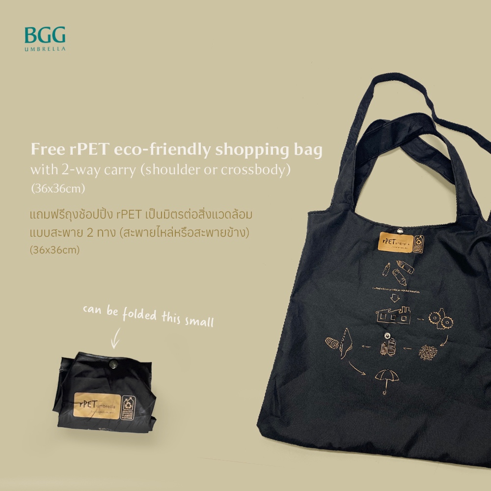 BGG rPET Folding Umbrella + shopping bag ร่มพับ 21นิ้ว เปิดปิดมือ พร้อมถุงช้อปปิ้ง rPET กันน้ำ กันแดด พกพาสะดวก (FM1168)