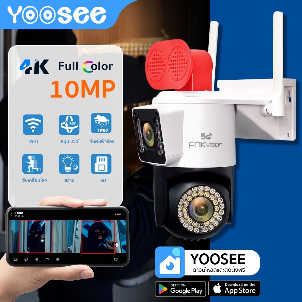 FNKvision กล้องสองเลนส์ WiFi5G หน้าจอคู่ 2กล้อง ดูพร้อมกันได้ Color Full HD10MP กลางคืนภาพสี กล้องวงจรปิดไร้สาย ภาพคมชั