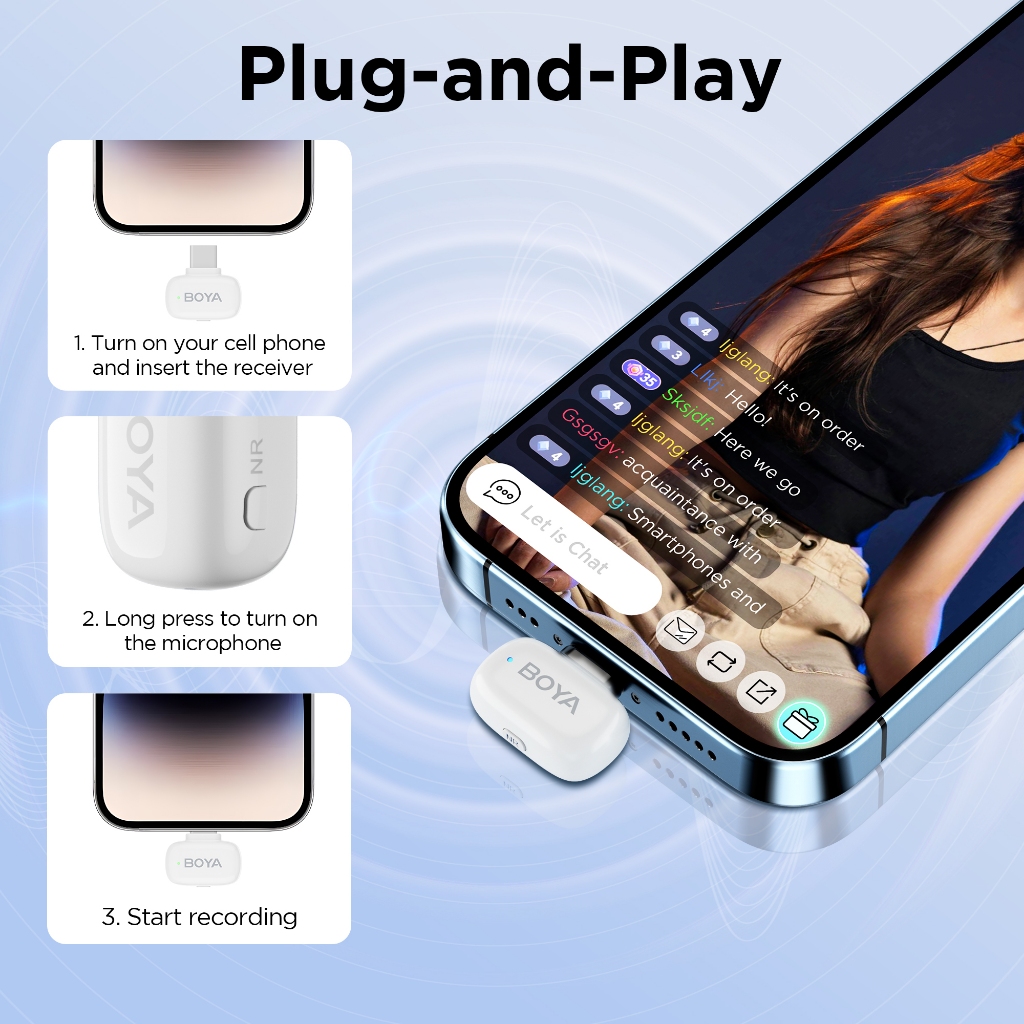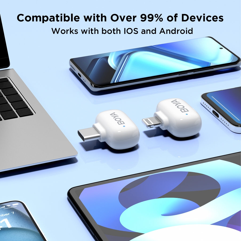 BOYA Mini Wireless Lavalier ไมโครโฟนลดเสียงรบกวน Mini Mic สําหรับ IOS Type-C Audio Video
