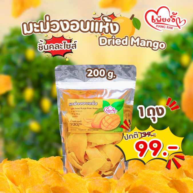 (ขายดี🔥)เพียงรัก - มะม่วงอบแห้ง ออริจินอล หวานอมเปรี้ยว "ชิ้นคละไซส์" ไม่ผสมแป้ง