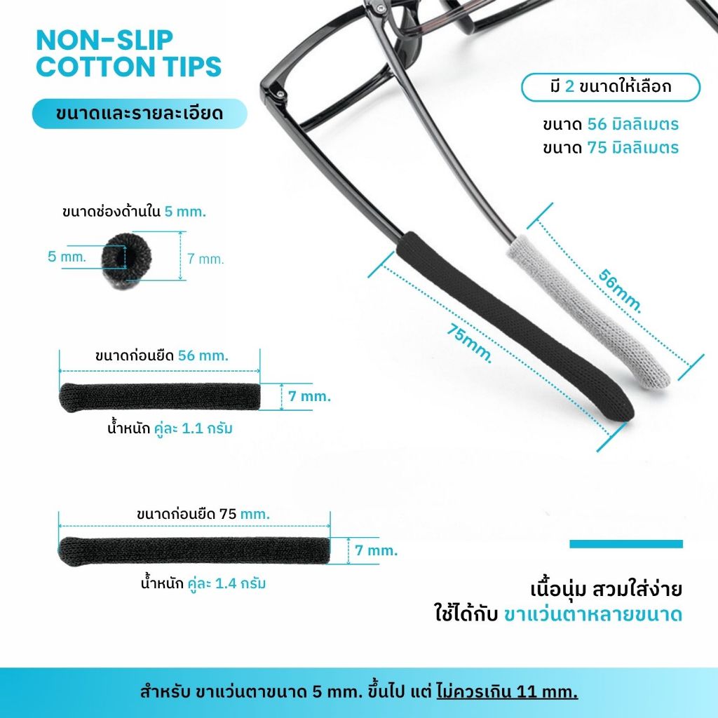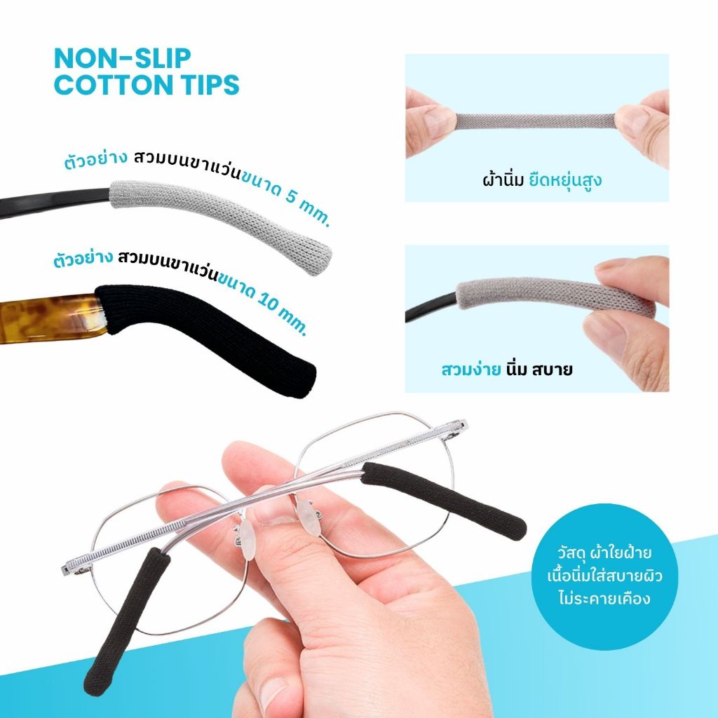 ANZ STUDIO ปลอกสวมขาแว่นตา ผ้าฝ้าย ปลอกขาแว่นตา เนื้อนิ่ม กันลื่น ยาว 5.5 cm มี 2 สี