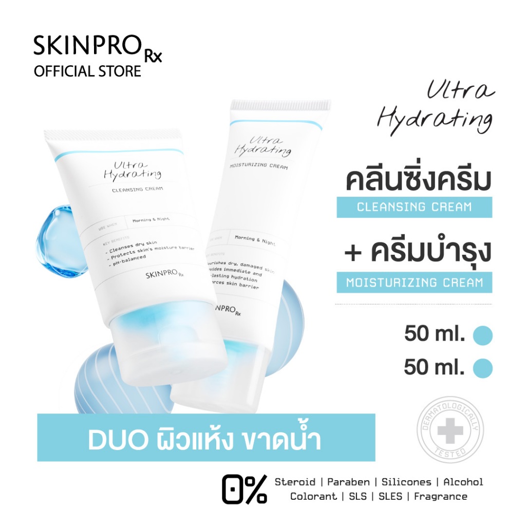 SKINPRO Rx DUO ดูแลผิวแห้งขาดน้ำ Ultra Hydrating Cleansing Cream 50 ml. + Ultra Hydrating Moisturizing Cream 50 ml.