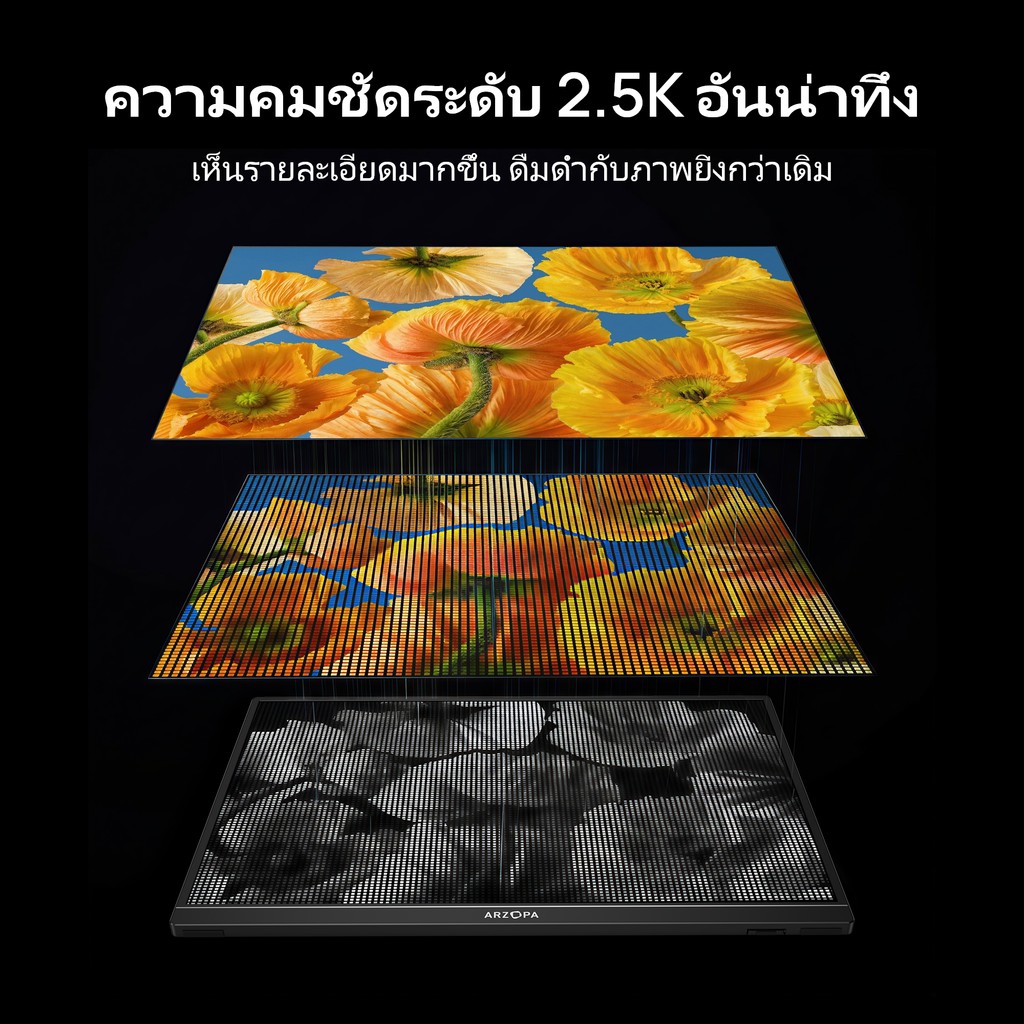 ARZOPA Z1RC - จอมอนิเตอร์พกพาขนาด 16 นิ้ว 2.5K หน้าจอ QHD IPS 2560x1600 123% sRGB พร้อมขาตั้งในตัว หน้าจอเสริมภายนอกที่สองสำหรับ Mac แล็ปท็อป โทรศัพท์ PS4/5 Xbox Switch