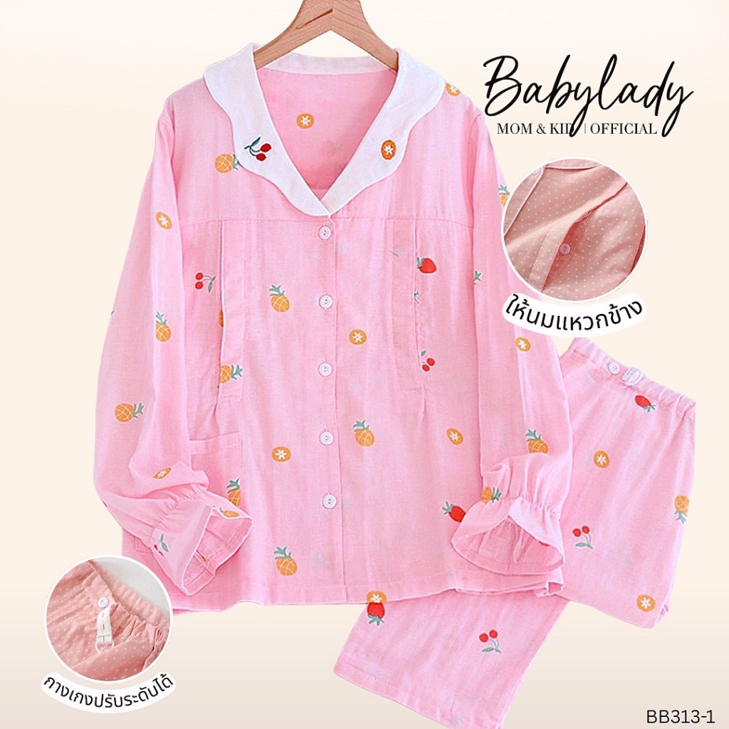 [BB 313] ชุดนอนคลุมท้องให้นมได้ 2 ชิ้น | BABYLADY ♡ - มีกระดุมเปิดให้นม + กางเกงเอวปรับได้