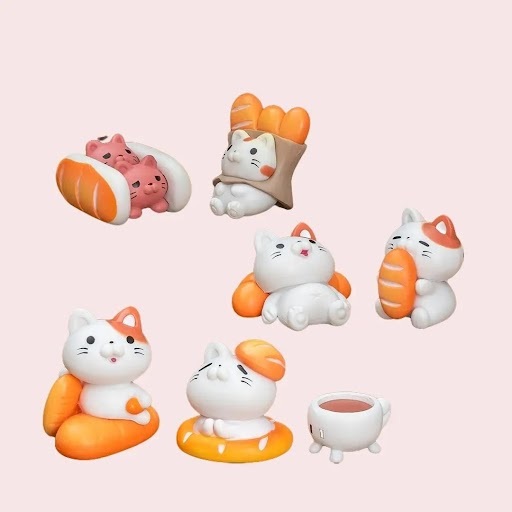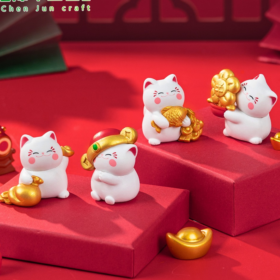 A047 ตุ๊กตาจิ๋ว ชุดแมวมงคล 4 ชิ้น สำหรับตกแต่งสวนถาด แต่งสวนจิ๋ว แต่งบ้าน ของขวัญ แต่งงาน ส่งจากไทย