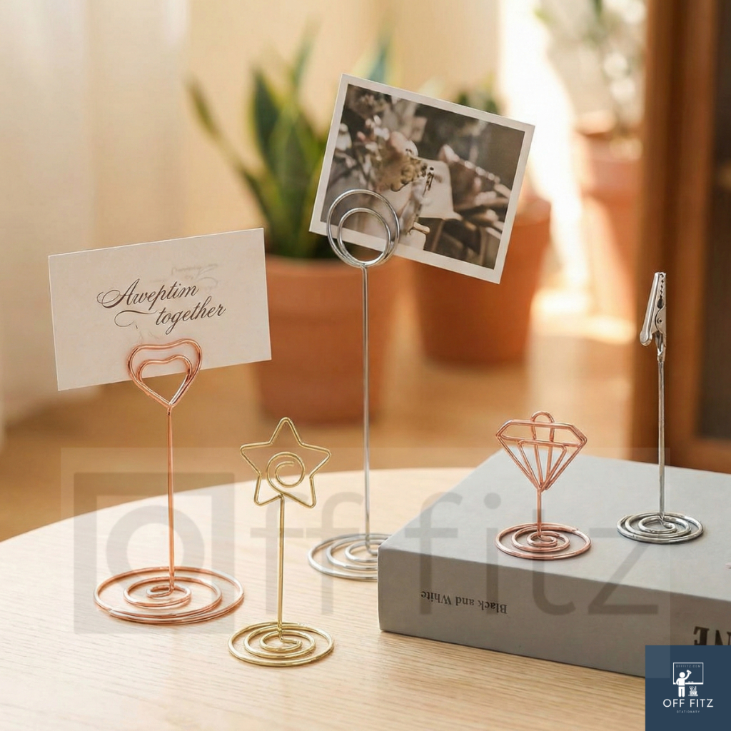 ป้ายตั้งโต๊ะคลิปหนีบการ์ด/รูป ขาตั้งลวดโลหะ มินิมอล ตกแต่งคาเฟ่