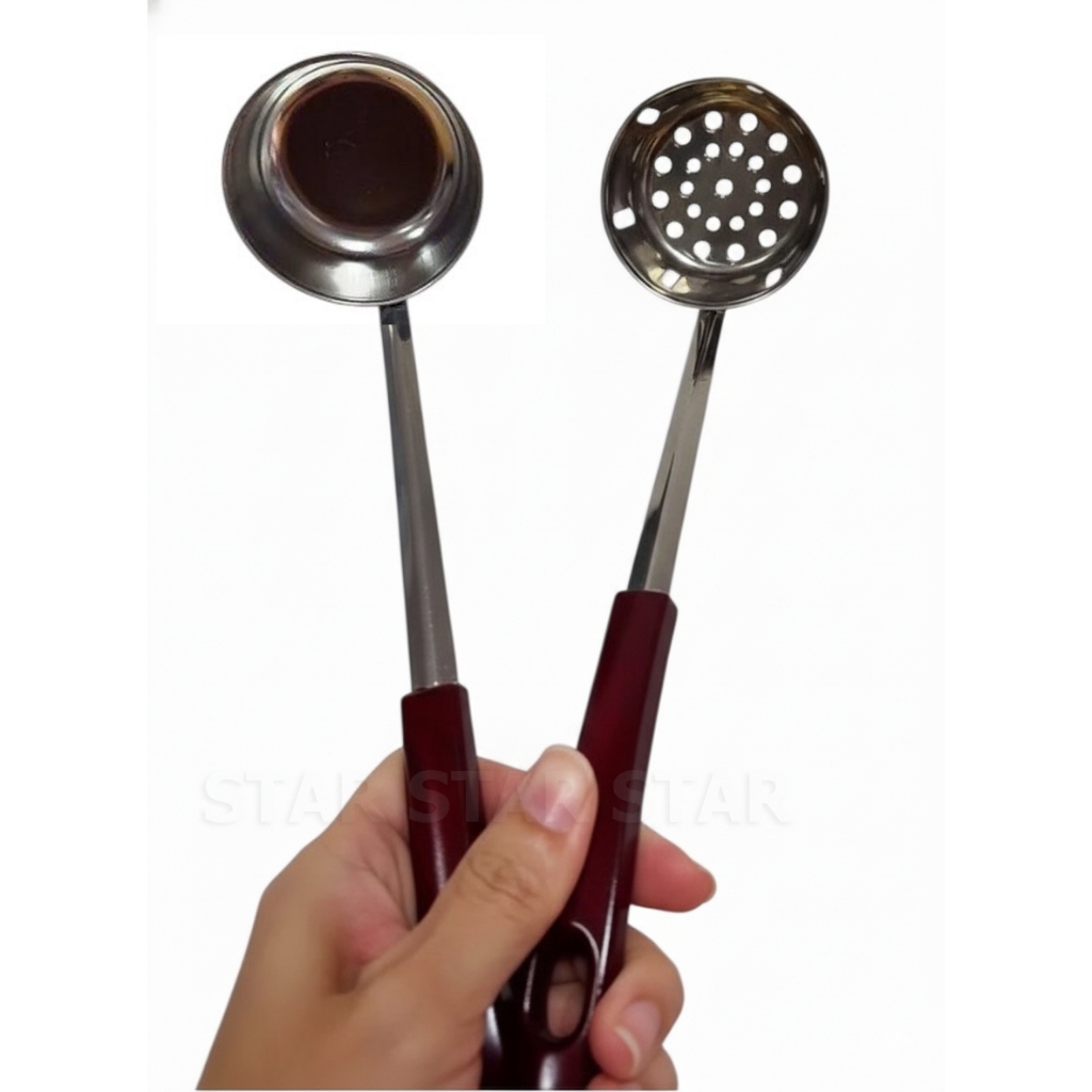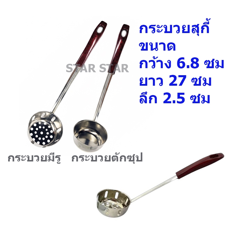 กระบวยลวกสุกี้ กระชอนลวกจิ้มจุ่ม ตักซุป ชาบู แบบมีรูและไม่มีรู ที่ตักน้ำซุป (ราคาต่อ 1ชิ้น)