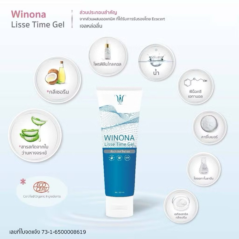 เจลหล่อลื่น เจลวิโนน่า Winona lisse time gel เจลสำหรับน้องสาว เพิ่มน้ำหล่อลื่น ลดอาการเจ็บ แสบ ระหว่างมีเพศสัมพันธ์