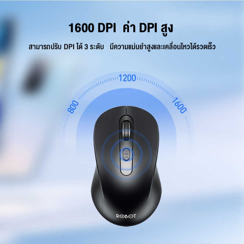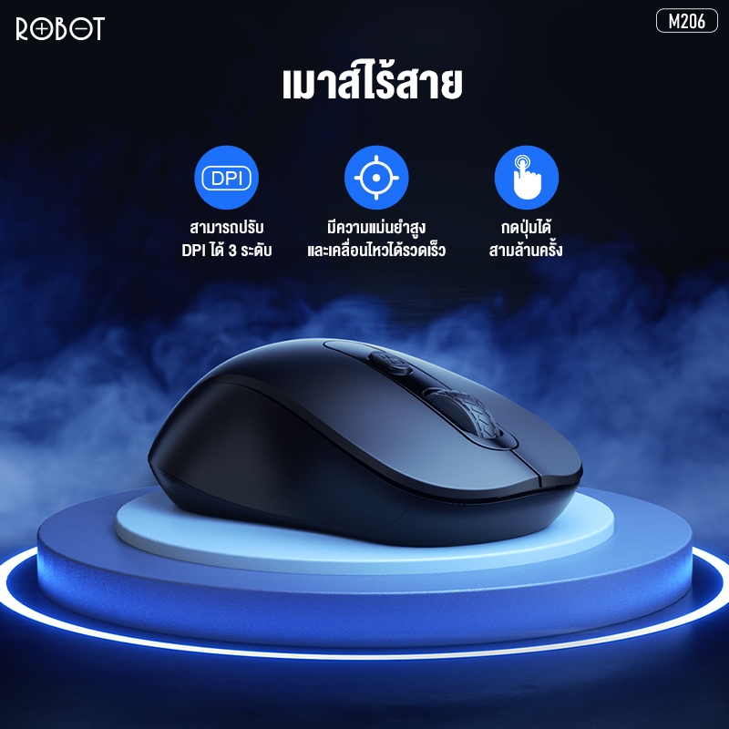 [ประกัน 1 ปี] ROBOT เมาส์ไร้สาย รุ่น M206 เมาส์ มีเสียงคลิก เม้าส์คอมพิวเตอร์ Wireless Mouse รูปทรงกระทัดรัด