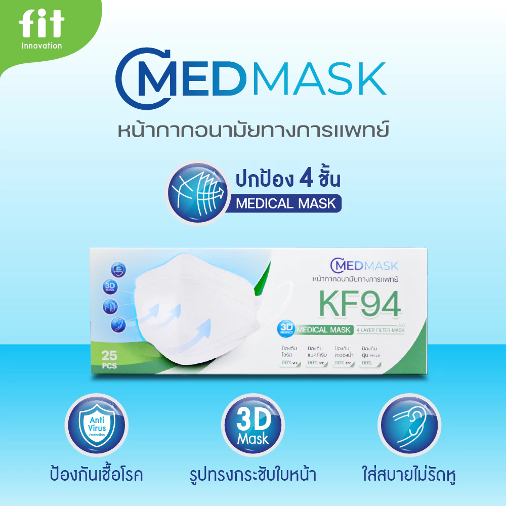 CMED MASK KF94 Medical Mask 4 Layers ซีเมด มาสก์ หน้ากากอนามัยทางการแพทย์ [25 ชิ้น][มีให้เลือก 2 สี]