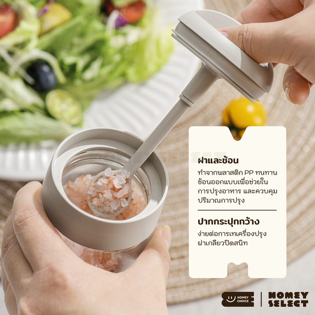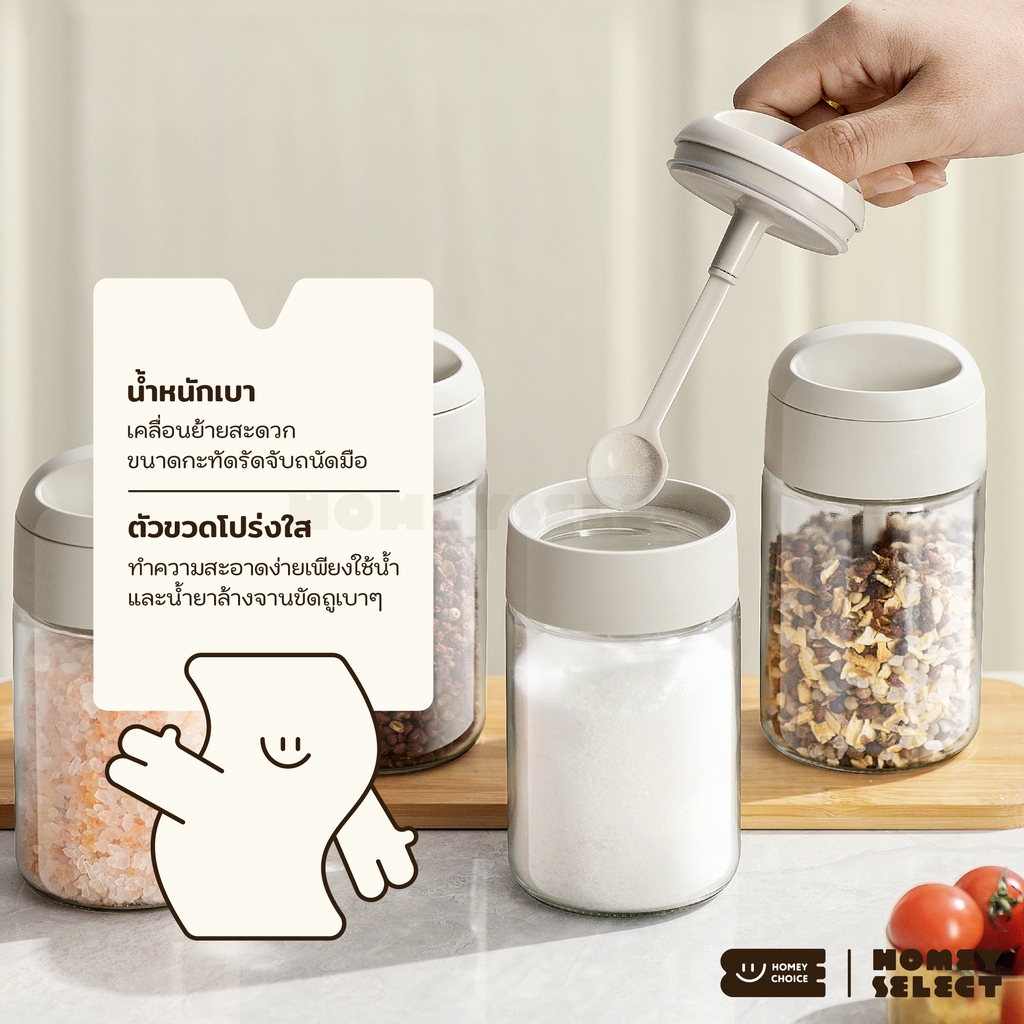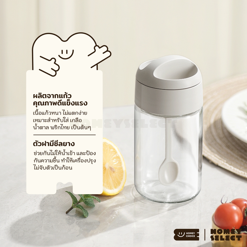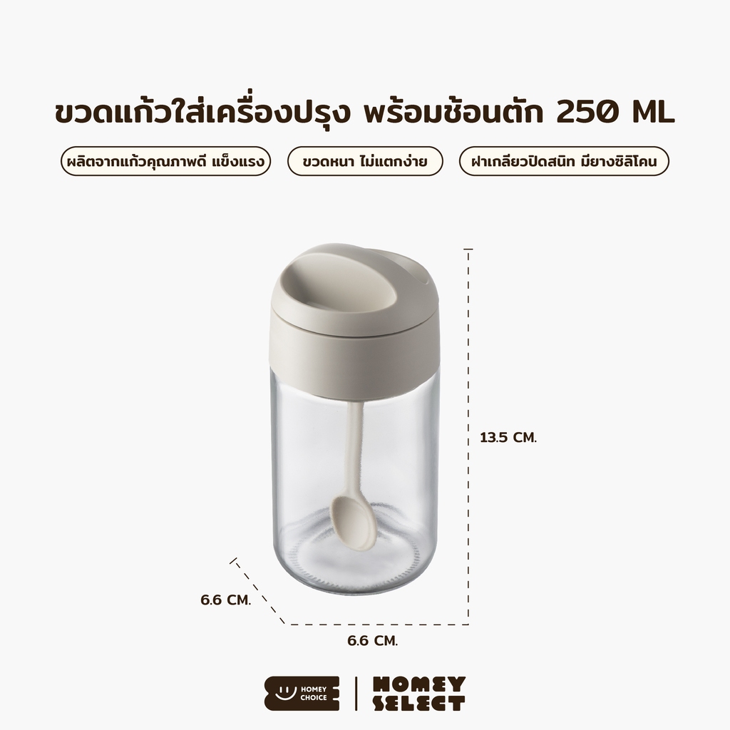 HomeyChoice ขวดแก้วใส่เครื่องปรุง กระปุกใส่เกลือ ที่ใส่เครื่องปรุง พร้อมช้อนตัก ขนาด 250ML รุ่น 8075